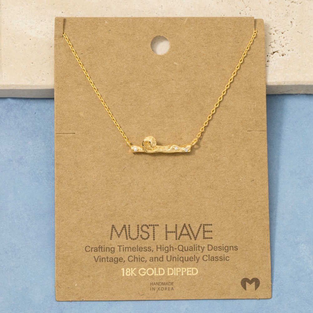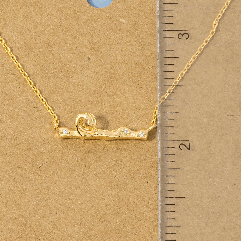 • Upgrade your pendant necklace game, this pendant necklace possesses a fine gold dipped mini cubic zirconia studs wave bar design. Elevate your fashion game with this versatile pendant necklace, seamlessly integrating into your signature style. Available in G, R, S. This item is sold in packs of 1.
