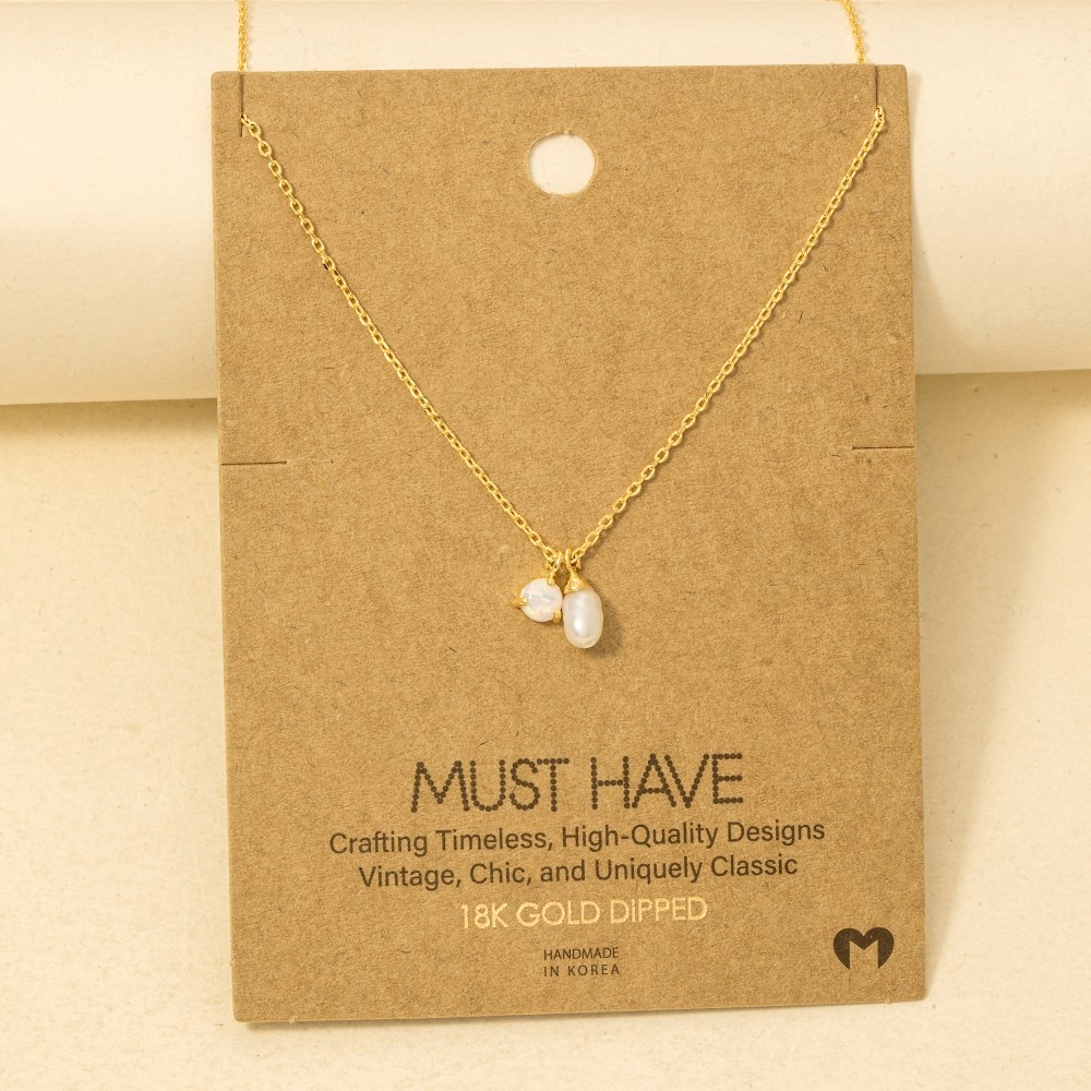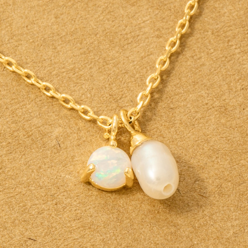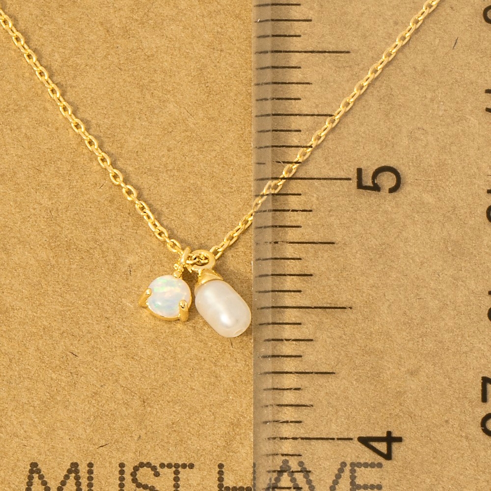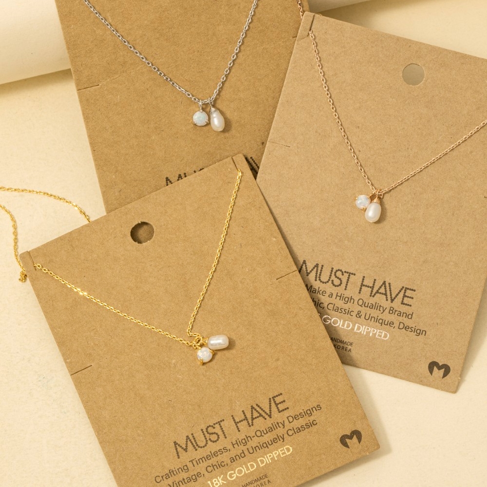• Effortlessly elevate your outfit, this chain necklace radiates a sleek gold dipped opal and pearl charms design. Perfect for any occasion, this versatile chain necklace will enhance any outfit you wear. Available in G, R, S. This item is sold in packs of 1.