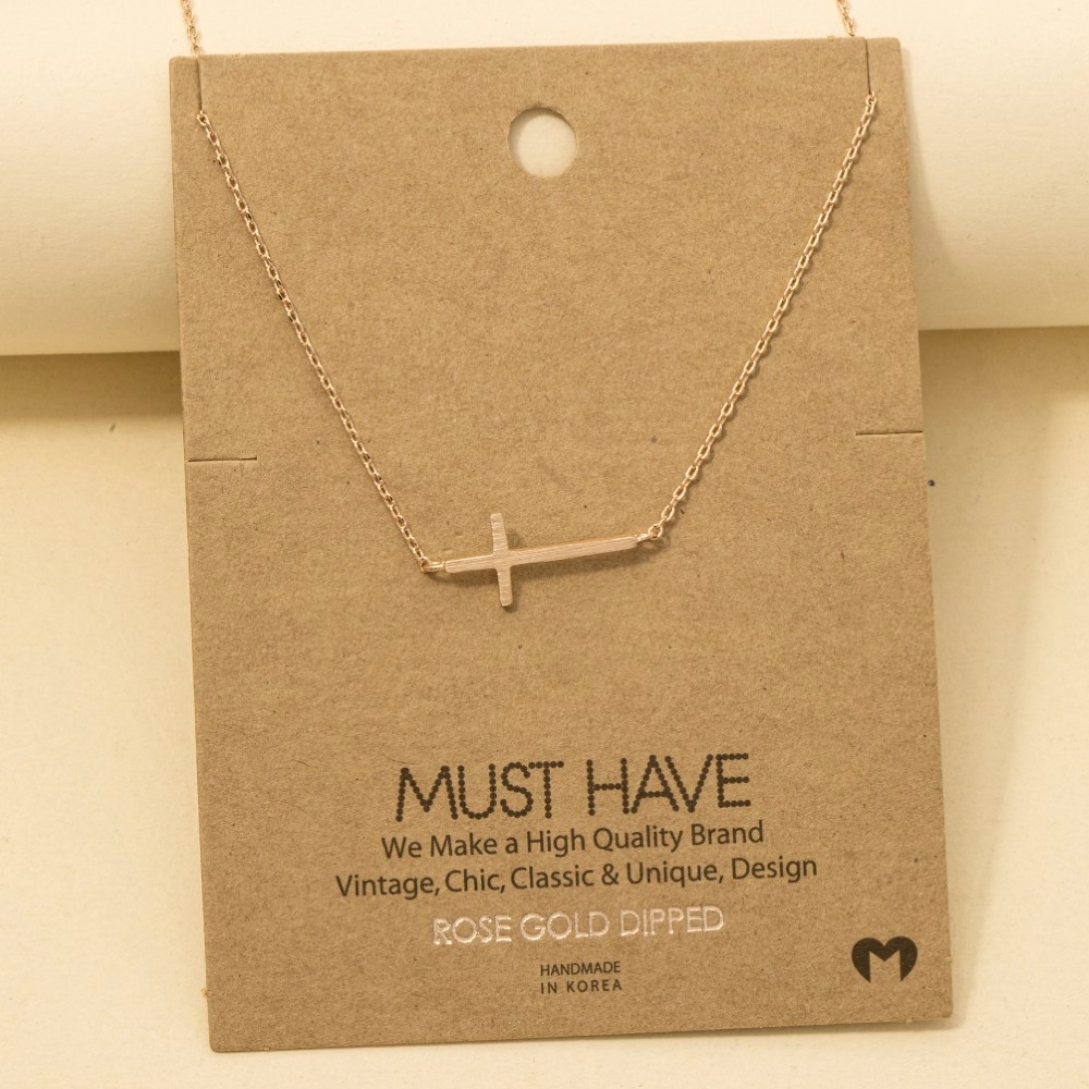• Bold, daring, and endlessly stylish, this pendant necklace showcases an alluring gold dipped side cross design. Elevate your personal style effortlessly with this versatile pendant necklace, an essential component for a refined wardrobe. Available in G, R, S. This item is sold in packs of 12.