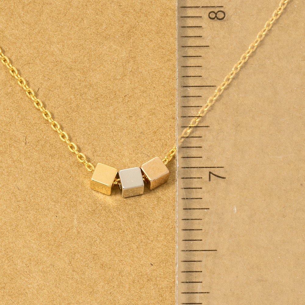 • Perfectly polished and endlessly versatile, this trending necklace exudes a refined gold dipped triple cube charm necklace design. This trending necklace is the perfect way to add a touch of elegance to any outfit. Available in G, R, S. This item is sold in packs of 12.
