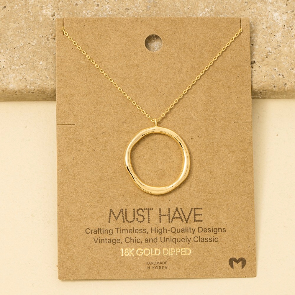 • A bold and daring choice, perfect for those who want to stand out from the crowd, this necklace incorporates a flawless gold dipped warped metallic hoop pendant design. The perfect way to complete any outfit, whether you're dressing up or keeping it casual. Available in S, G. This item is sold in packs of 1.