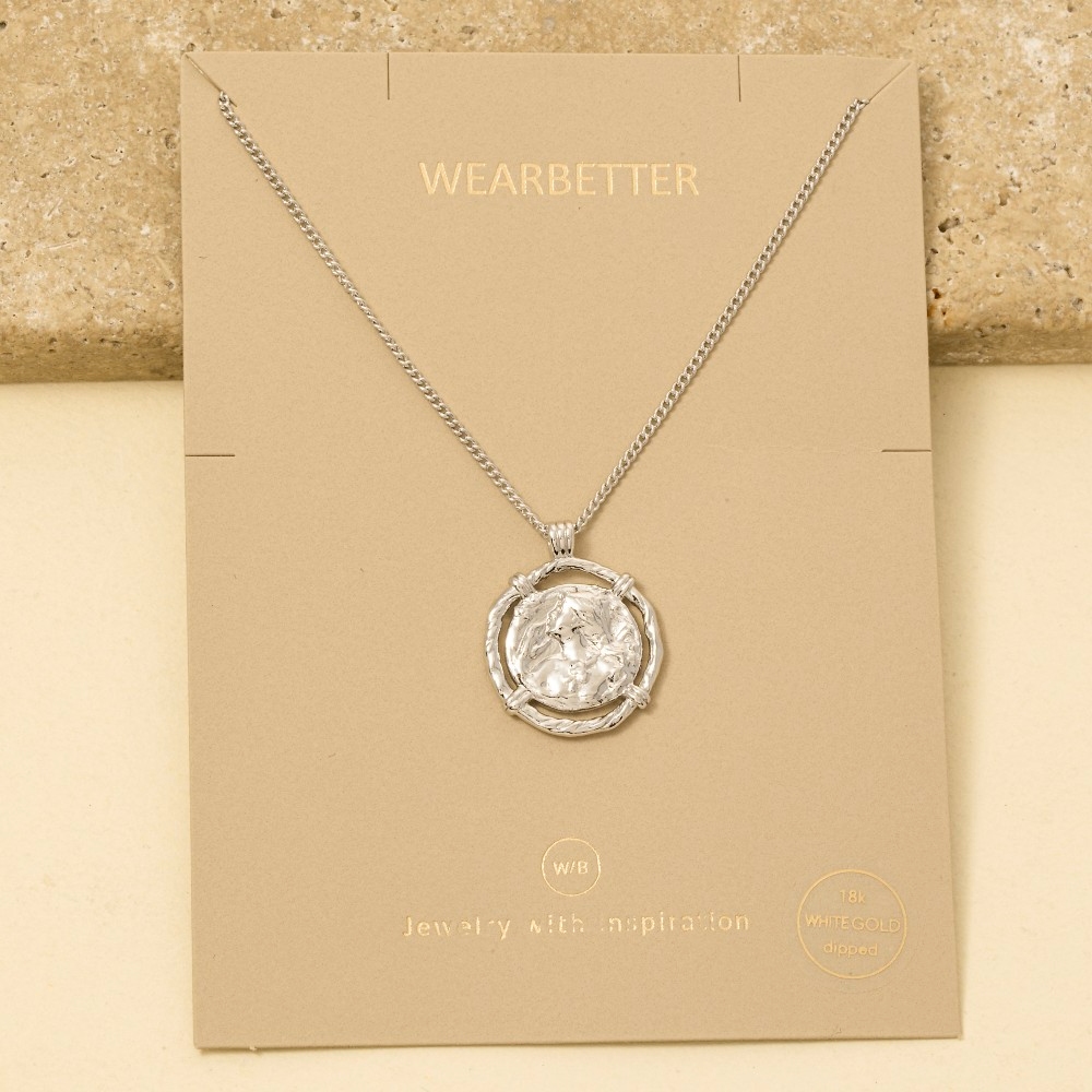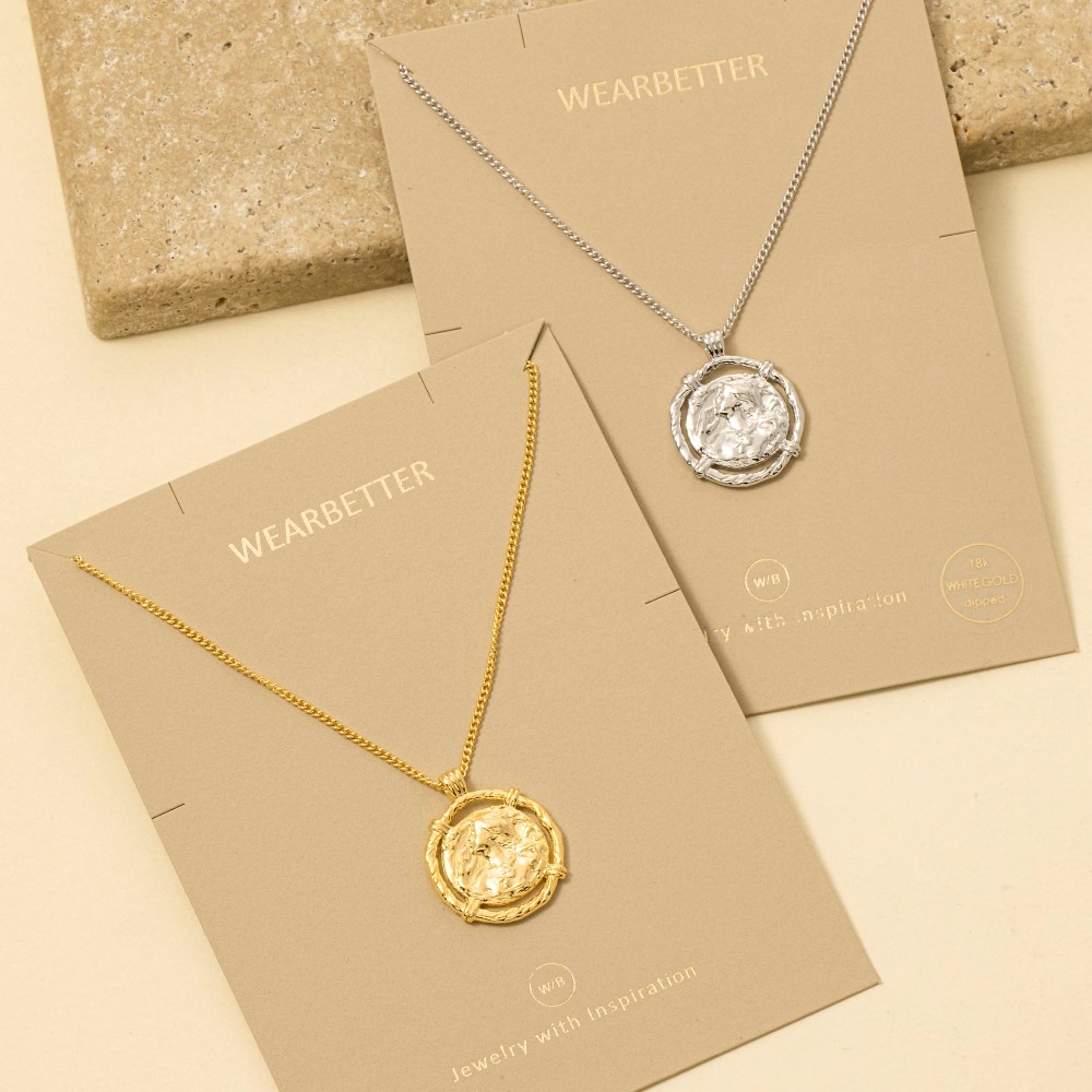 • Chic, sophisticated, and always in style, this necklace embodies a sophisticated hammered circle disc pendant design. Perfect for adding a touch of glamour and sophistication to any outfit, this necklace is a must-have. Available in G, S. This item is sold in packs of 1.