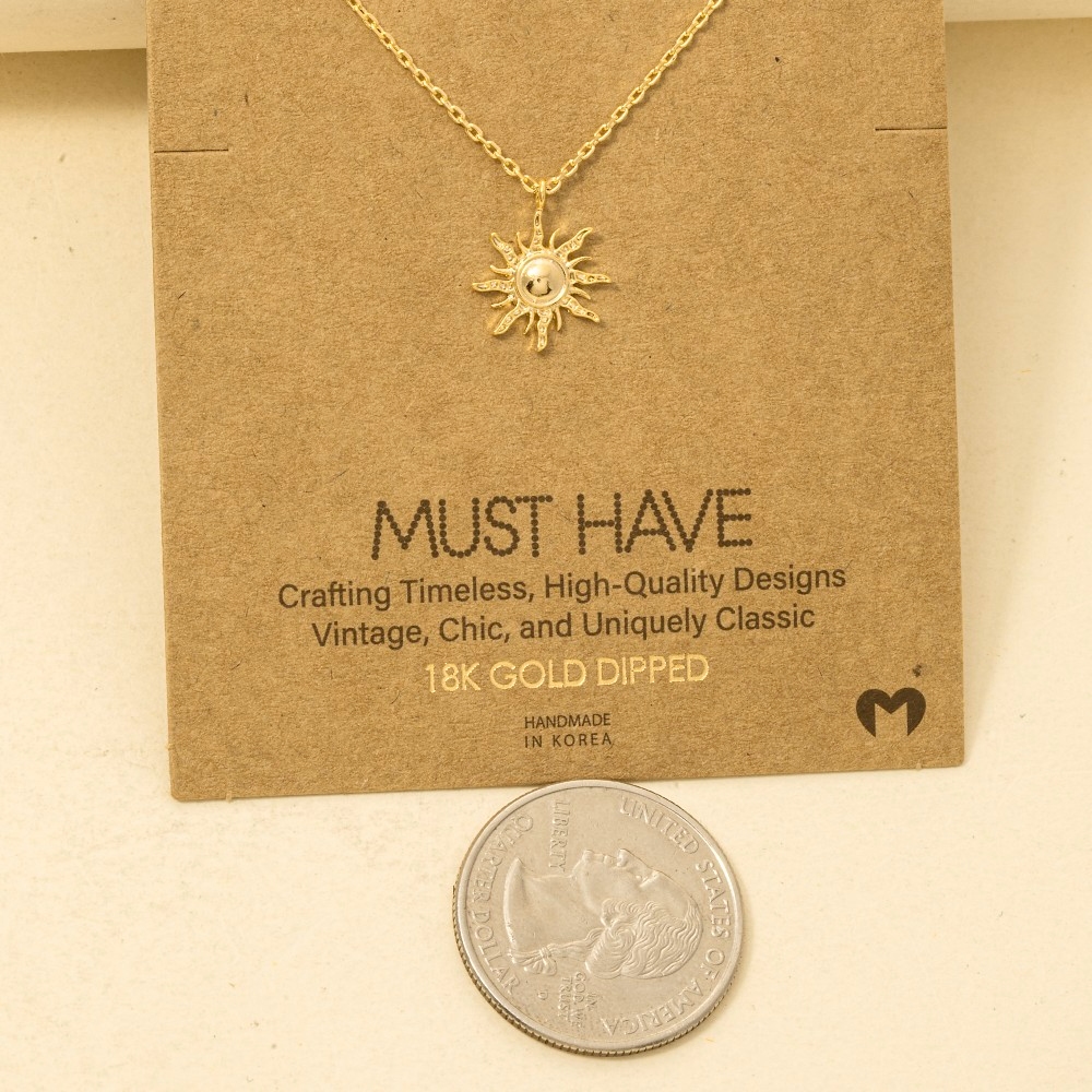 • Make a statement, this trending necklace features a distinct mini sun pendant necklace design. Elevate your fashion IQ with this versatile trending necklace, designed to seamlessly integrate into any style profile. Available in G, R, S. This item is sold in packs of 1.