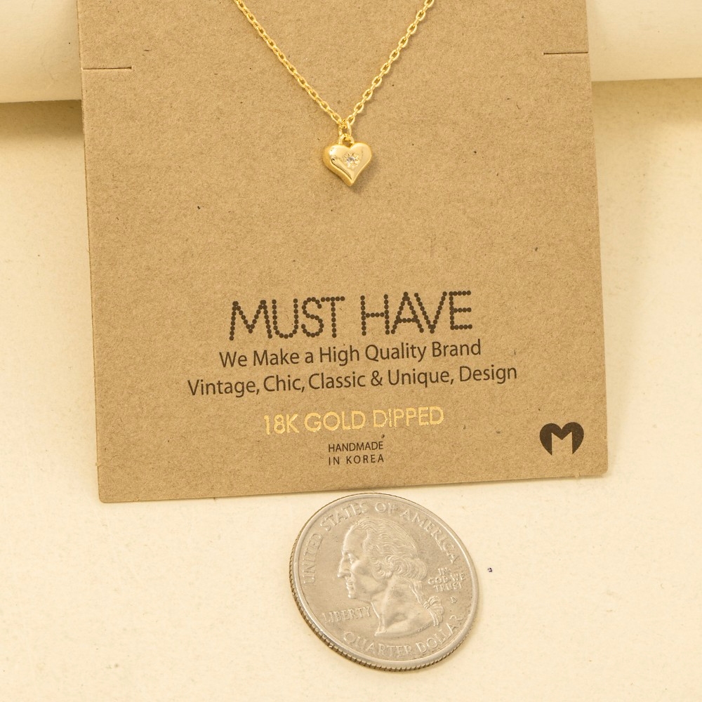 Gold Dipped Cz Studded Heart Pendant Necklace