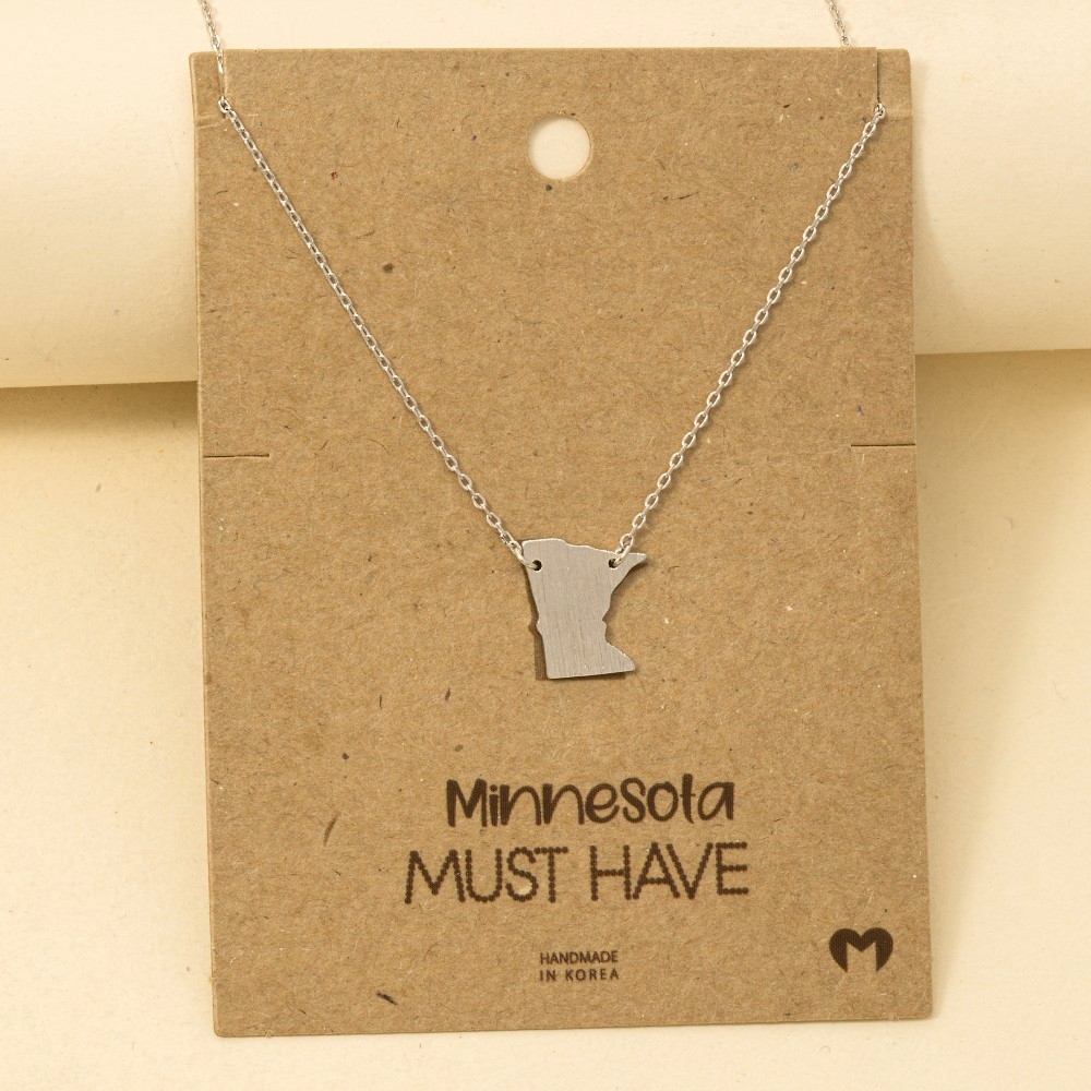 • Elevate your style with something unique and daring, this pendant necklace displays a unique minnesota state design. Elevate your personal style effortlessly with this versatile pendant necklace, an essential component for a refined wardrobe. Available in G, S. This item is sold in packs of 12.