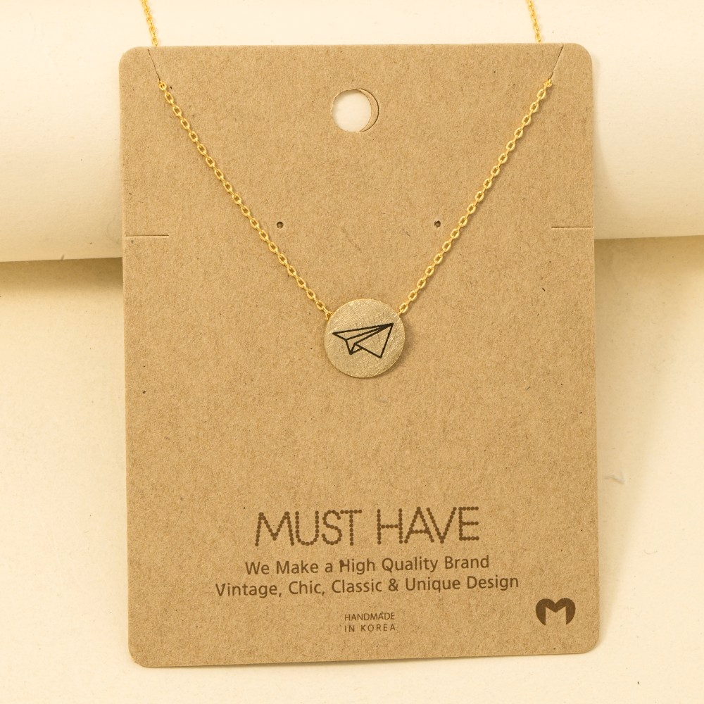 • Effortlessly elevate your outfit, this trending necklace brings a one-of-a-kind origami plane etched coin pendant necklace design. Discover a new level of fashion versatility as this trending necklace effortlessly elevates the allure of your attire. Available in NO COLOR. This item is sold in packs of 1.