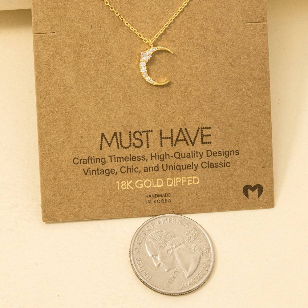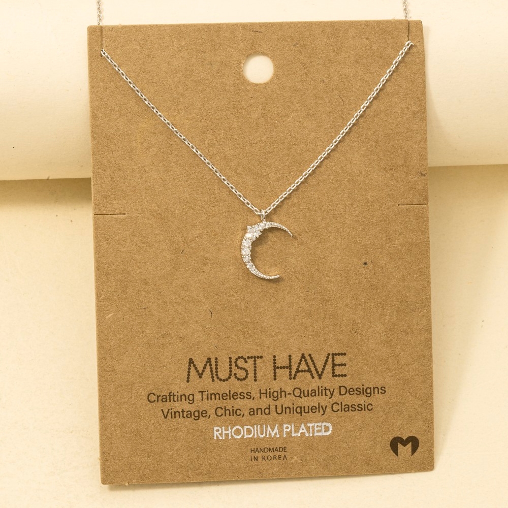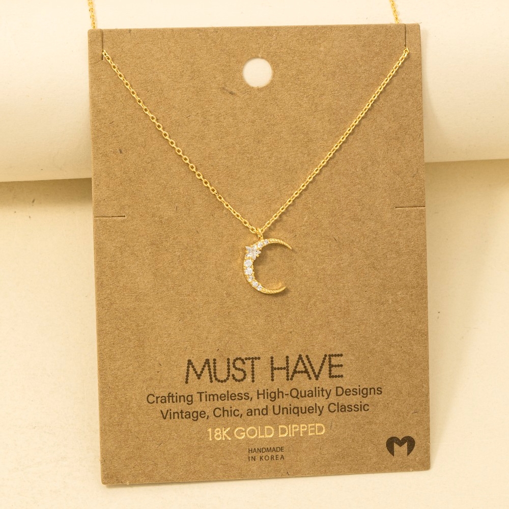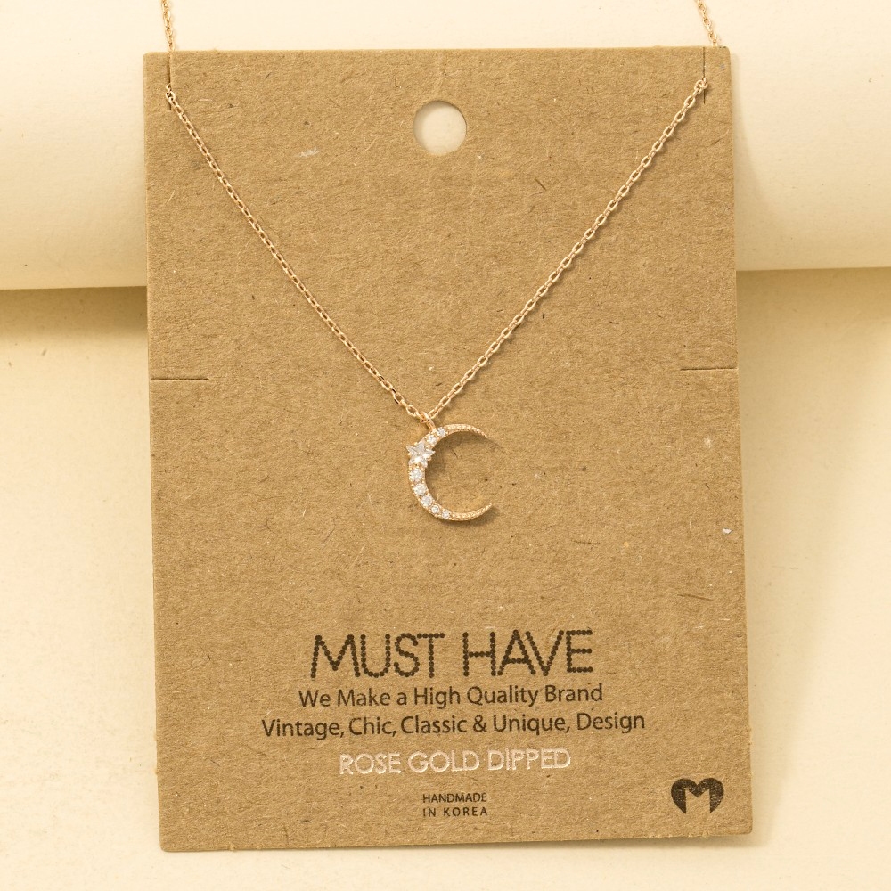 A timeless piece that will never go out of style, this trending necklace includes a stunning pave crescent moon pendant necklace design. Achieve a perfect blend of style and sophistication with this versatile trending necklace, a fashion-forward choice for any occasion. Available in G, R, S. This item is sold in packs of 1.