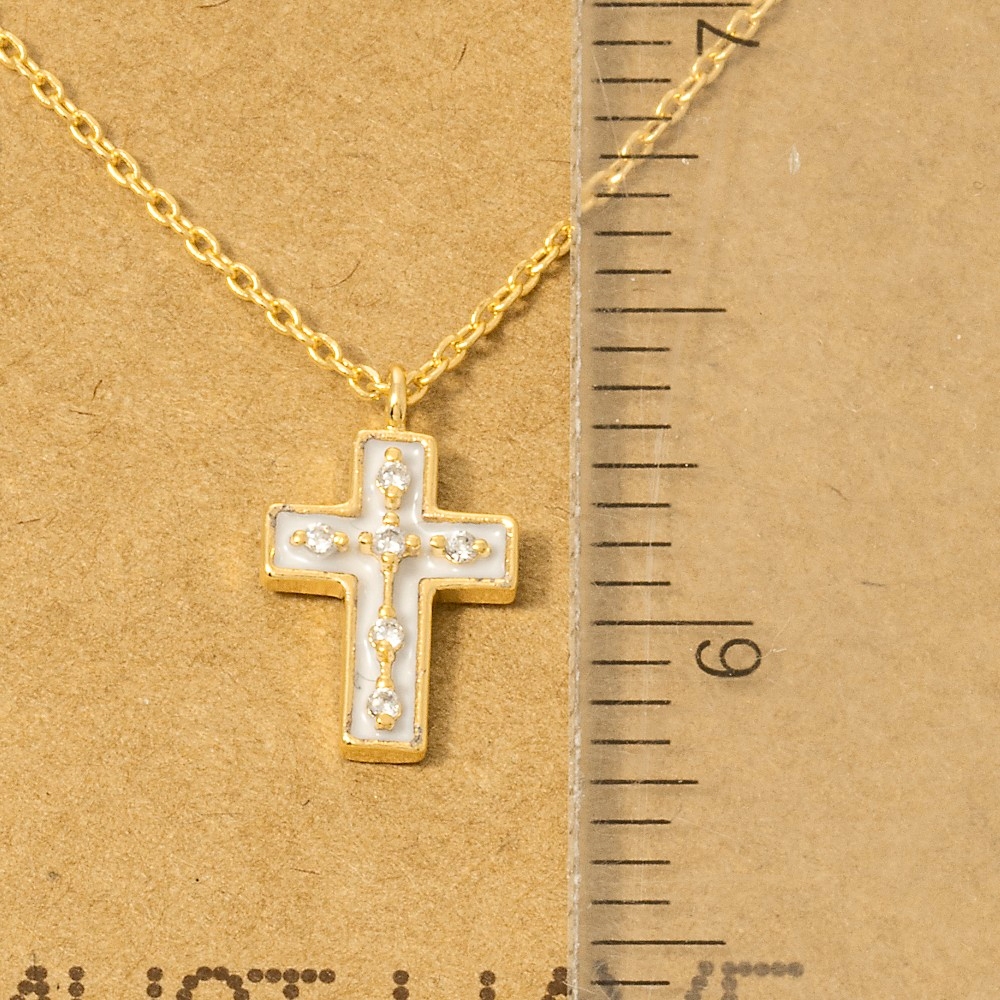 • Sleek, modern, and always stylish, this trending necklace displays a unique gold dipped enamel cross pendant necklace design. Embrace fashion flexibility with this versatile trending necklace, designed to effortlessly enhance the sophistication of any outfit. Available in BK, WH. This item is sold in packs of 12.