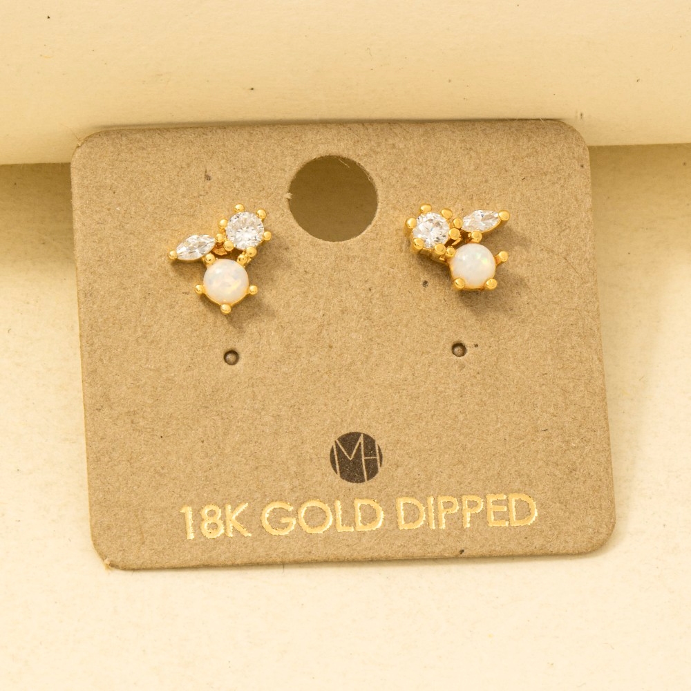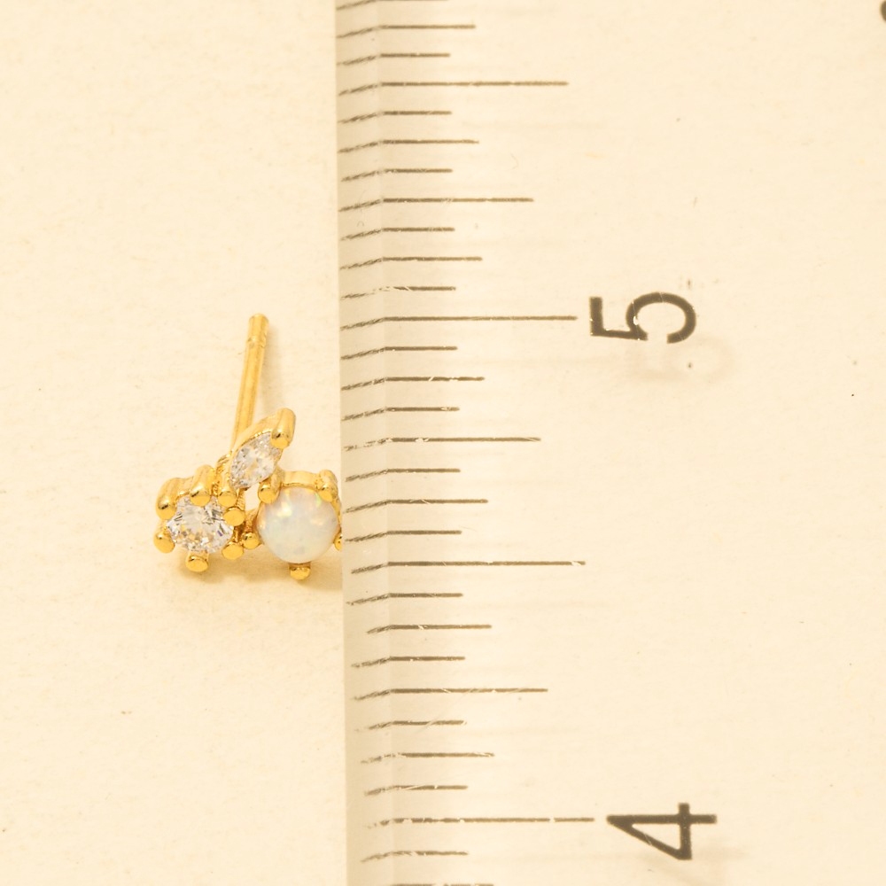 • This pair of stud earrings is made with 50% Brass, 30% Cubic Zirconia and 20% Opal.