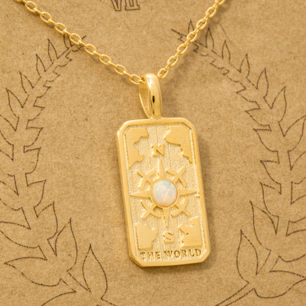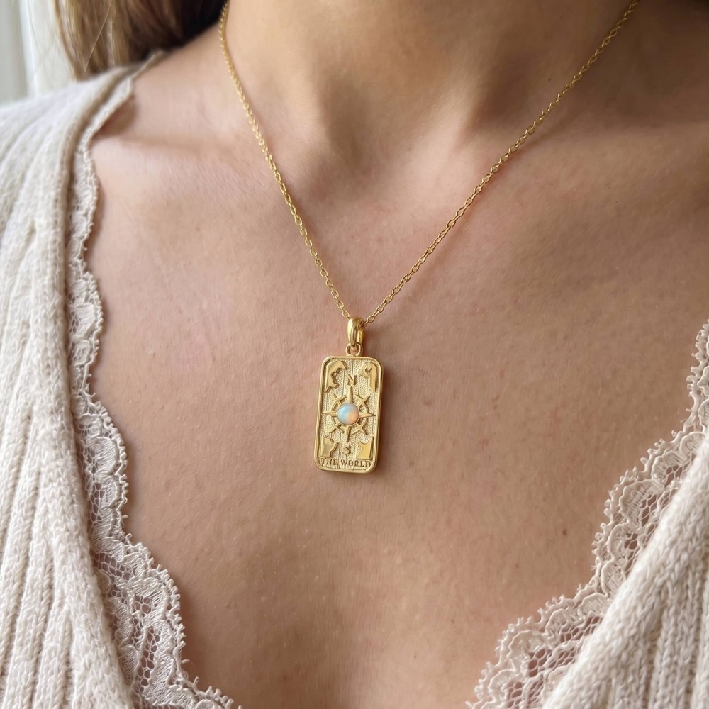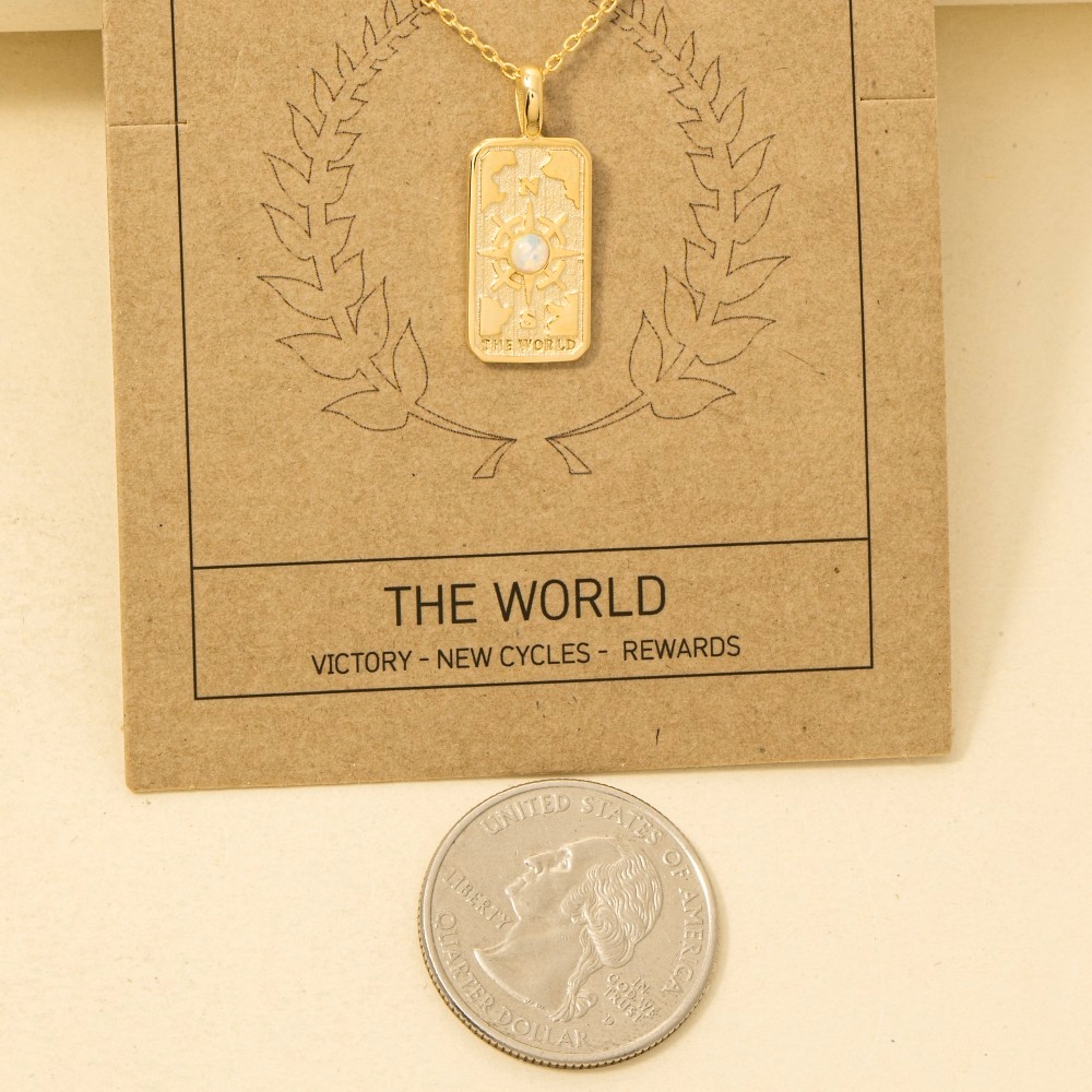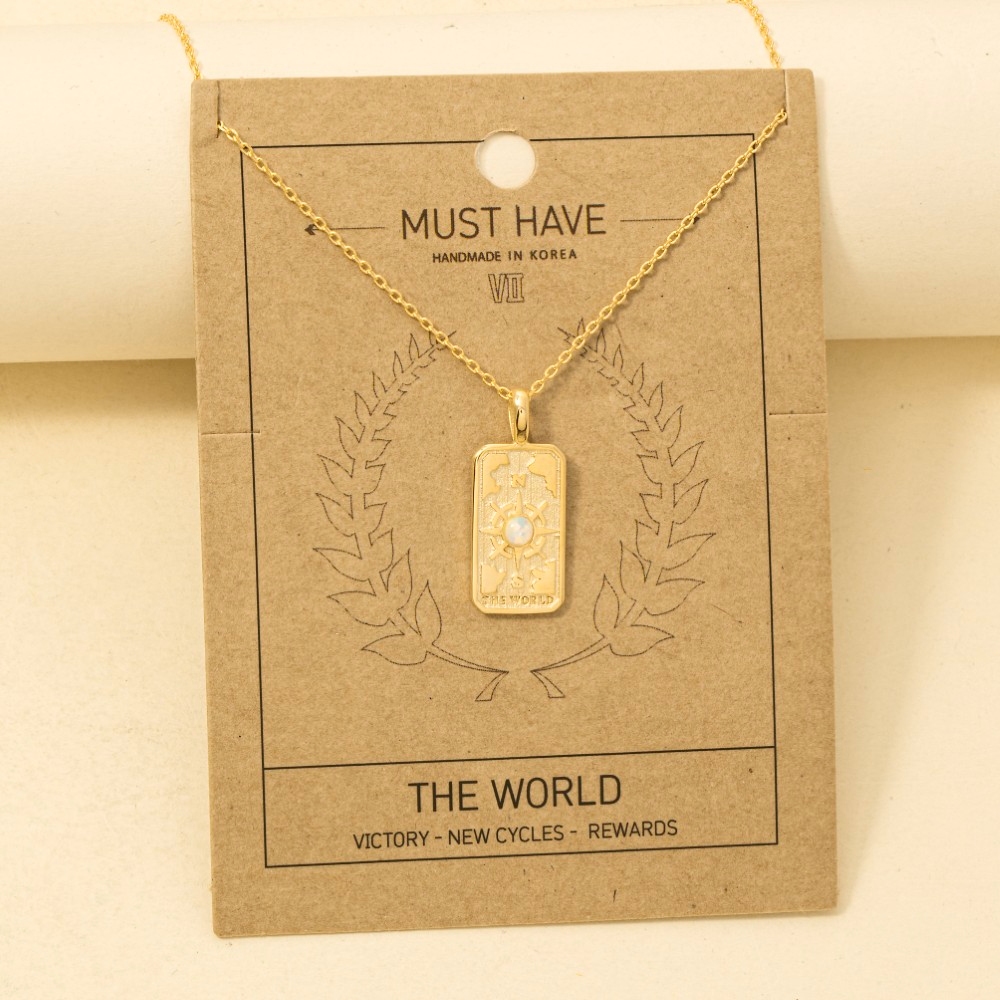 Stay ahead of the fashion curve, this trending necklace features an exceptional the world tarot card pendant necklace design. Upgrade your fashion game with this versatile trending necklace, a timeless addition that complements any outfit seamlessly. Available in G. This item is sold in packs of 1.