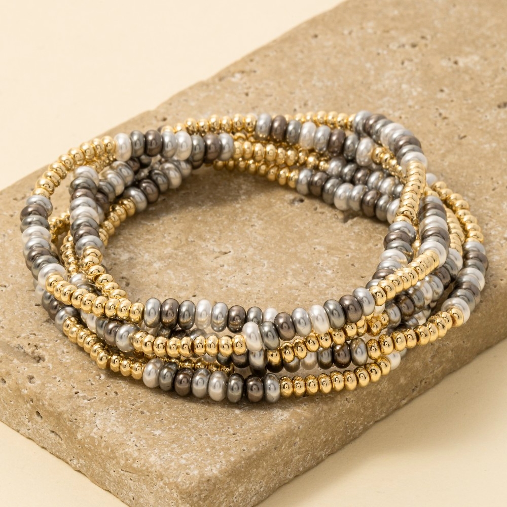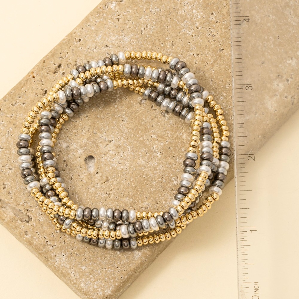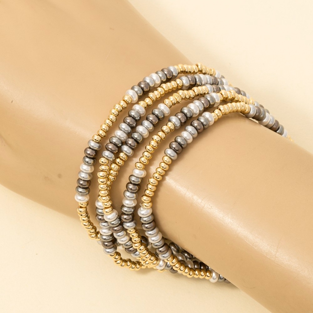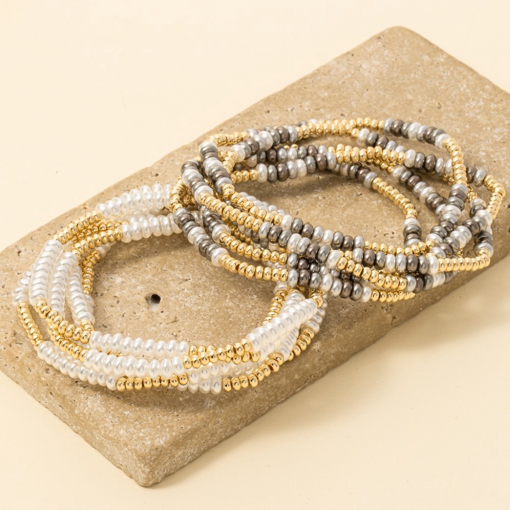 Mixed Pearl And Metallic Beaded Elastic Bracelet
