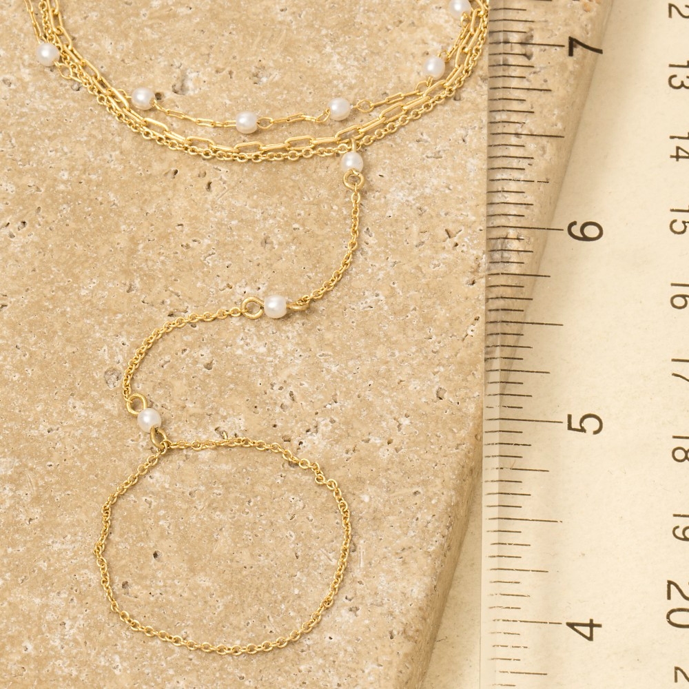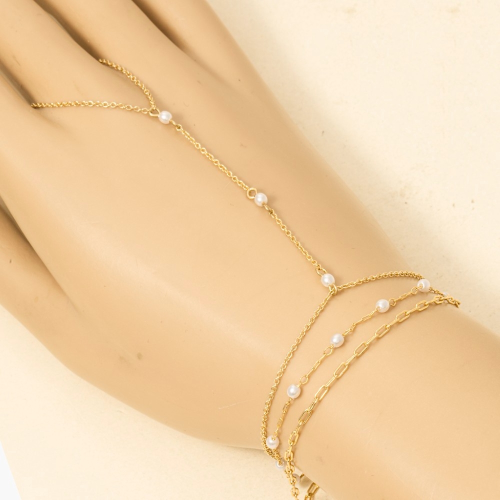 • Perfect for any occasion, this chain bracelet adds a distinctive intricate hand pearl bead design. Perfect for adding a touch of glamour and sophistication to any outfit, this chain bracelet is a must-have. Available in G. This item is sold in packs of 1.