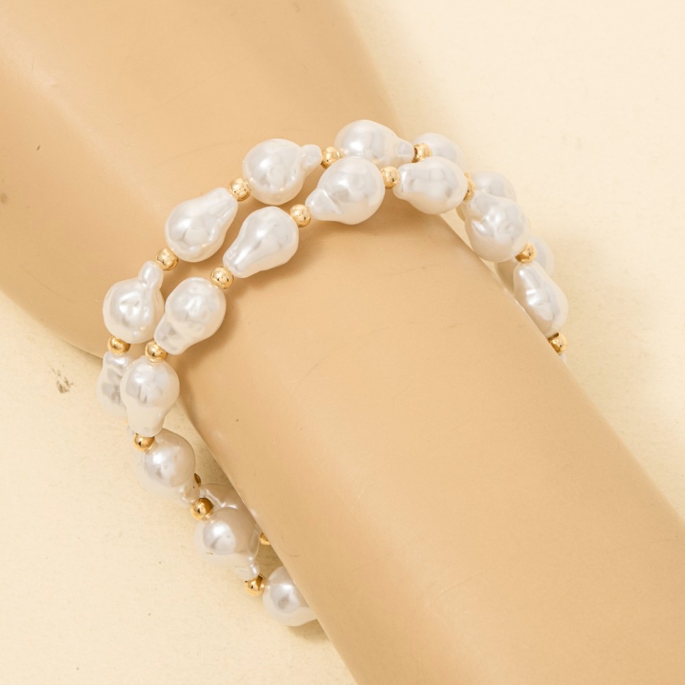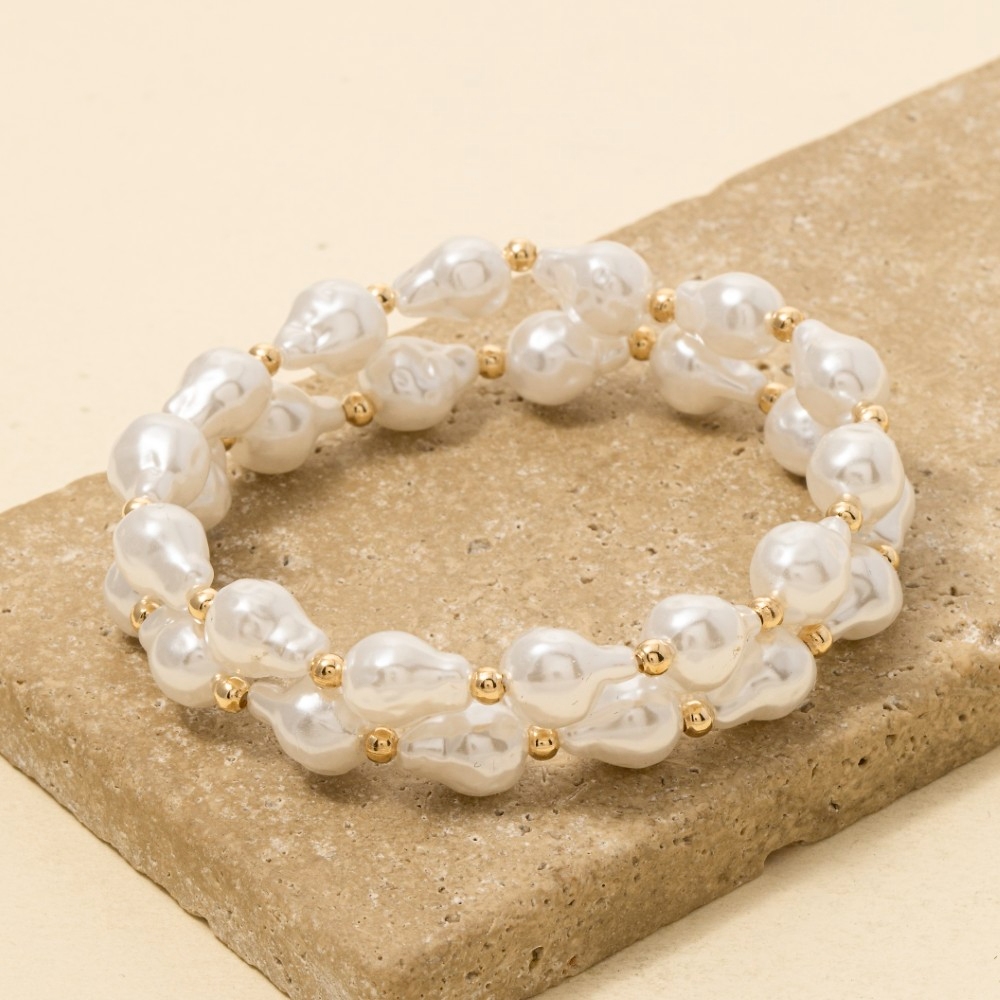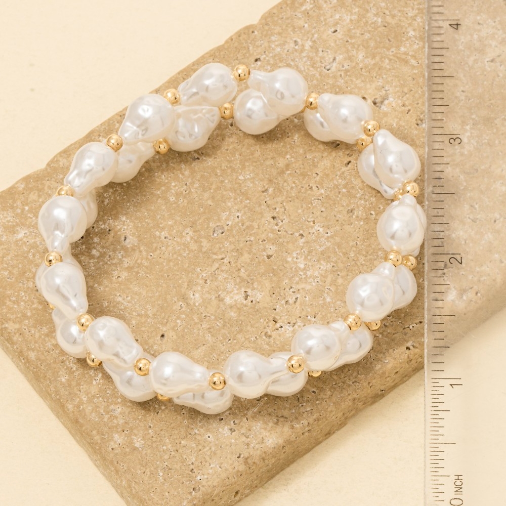 A unique and stylish piece that sets you apart, this bracelet emanates an elegant irregular pearl and metallic beaded set design. Elevate your outfit with this stylish bracelet that's perfect for any occasion. Available in HG. This item is sold in packs of 1.
