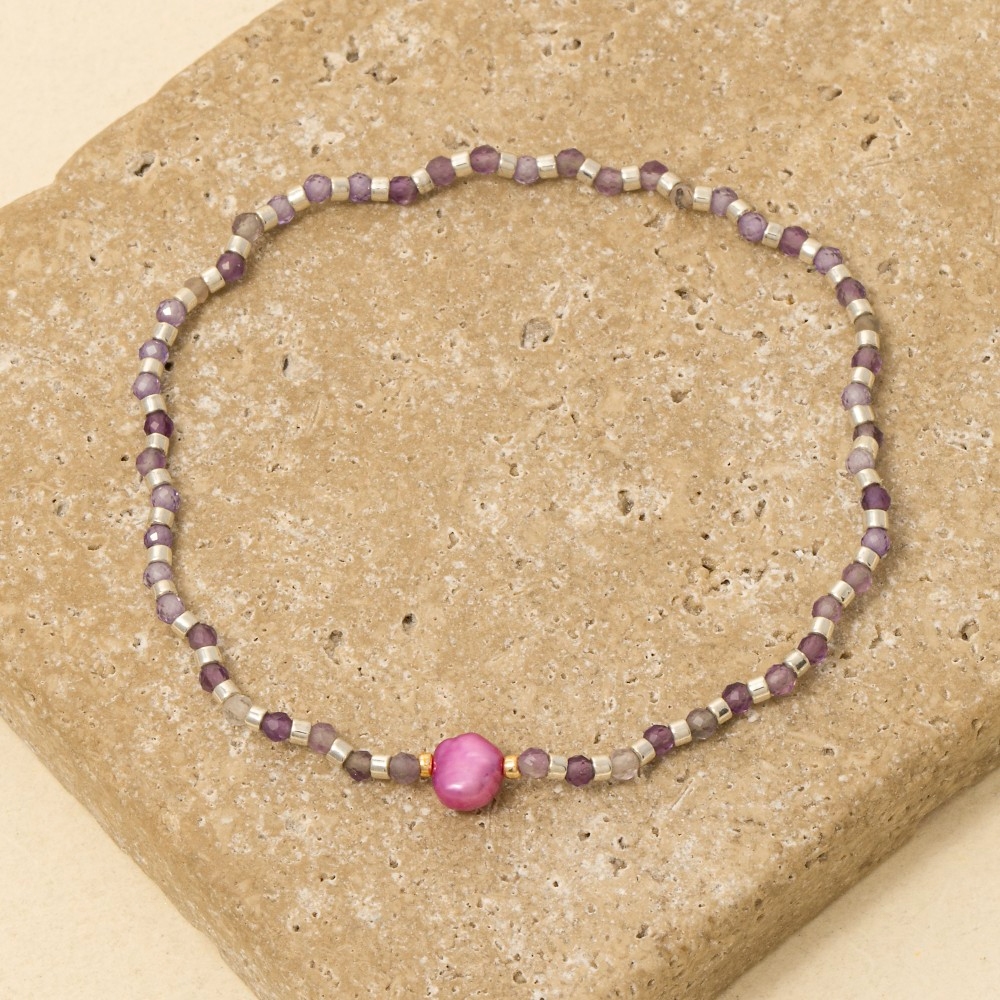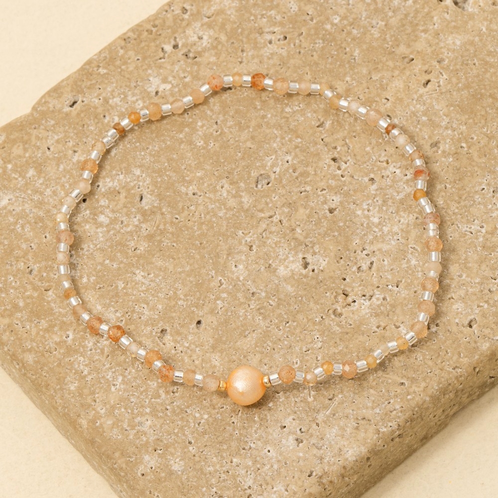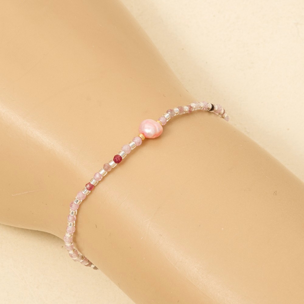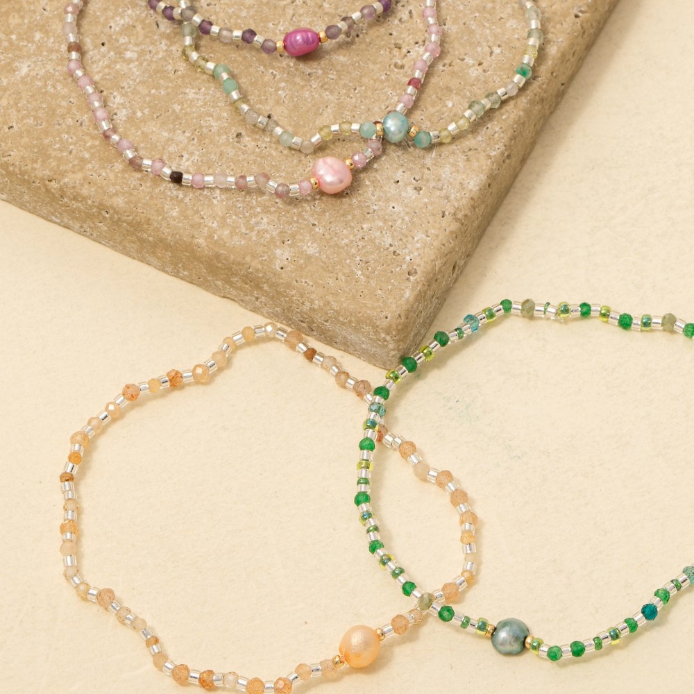 • This bracelet is made with 70% Gemstone, 20% Glass and 10% Fresh Water Pearl.