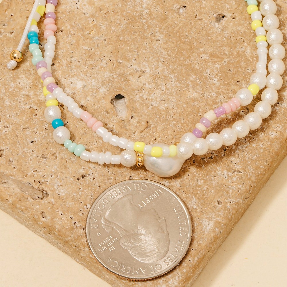 Pearl And Metallic Beaded Accent Layered Chain Necklace
