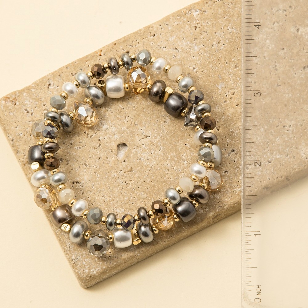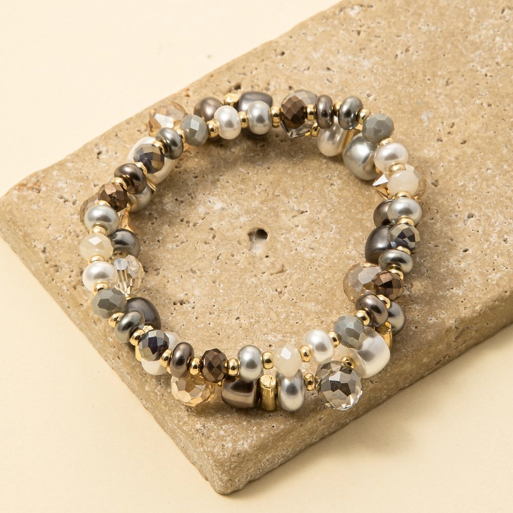 - Effortlessly chic and sophisticated, this bracelet showcases an alluring pearls and faceted beads set design. Take your style to the next level by incorporating this versatile bracelet, a key element in achieving a polished look. Available in GGY, GW. This item is sold in packs of 1.