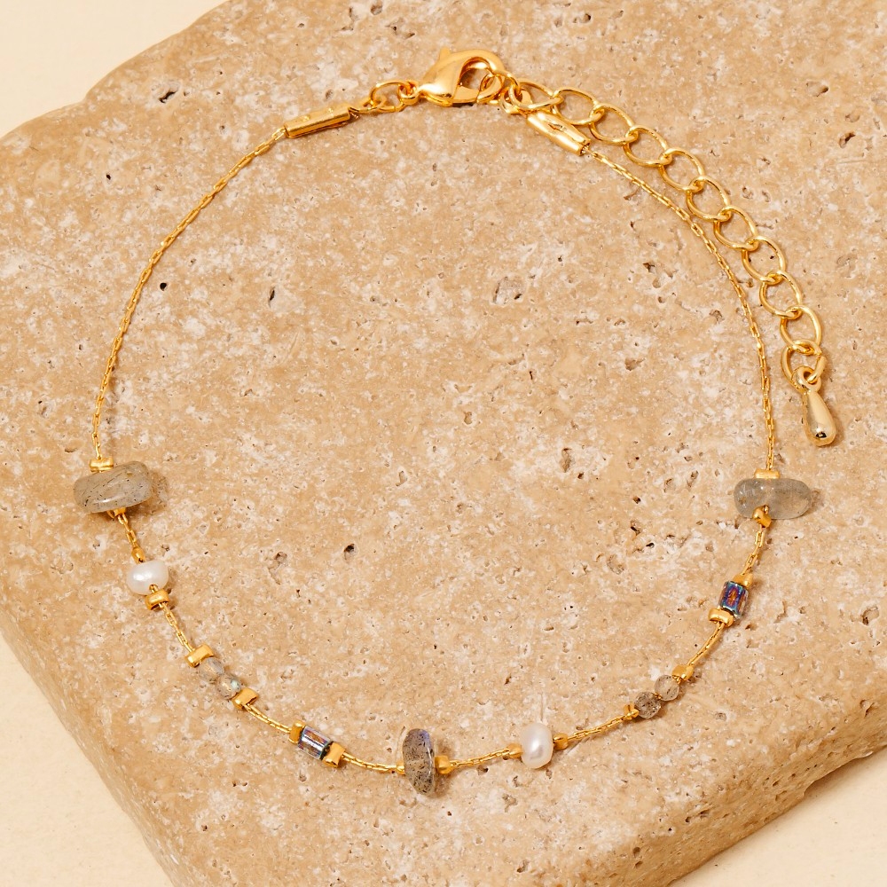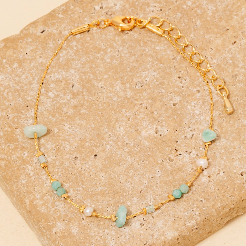 • This chain bracelet is made with 40% Brass, 40% Gemstone and 20% Fresh Water Pearl.