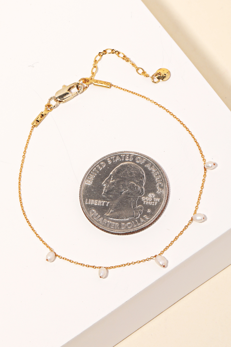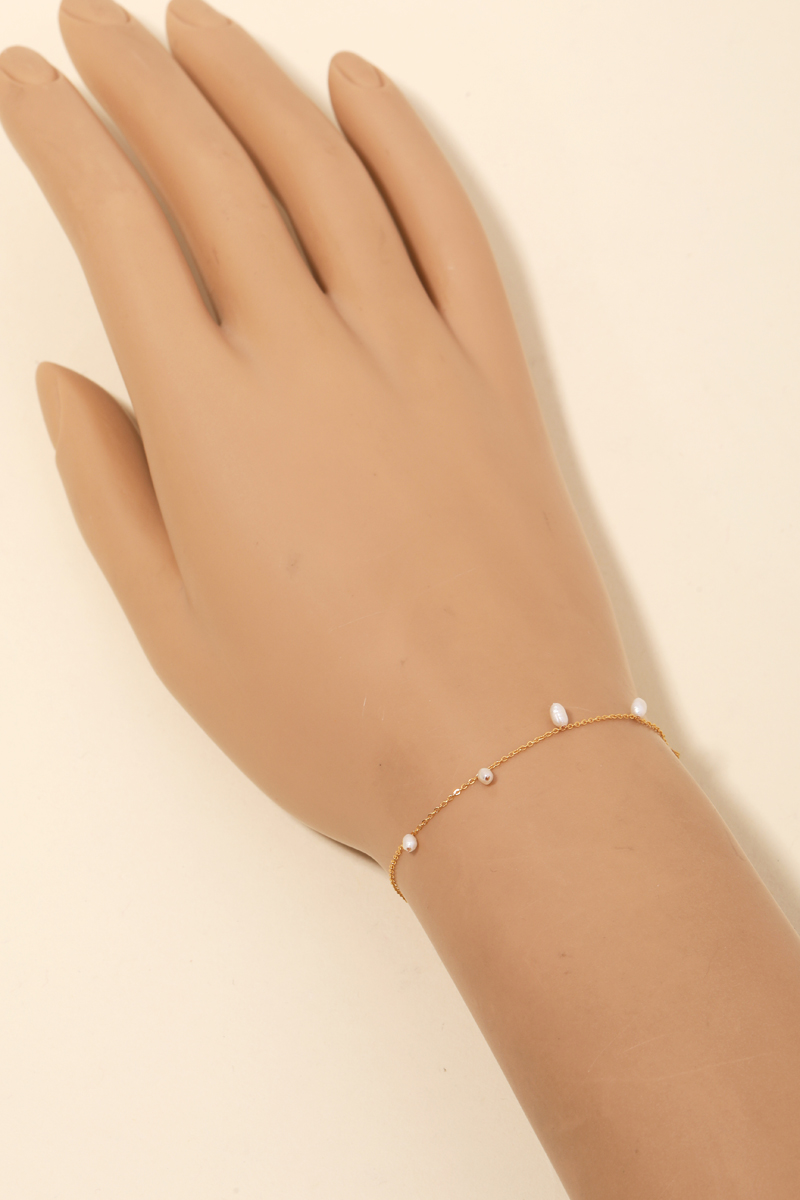- A bold and daring choice, perfect for those who want to stand out from the crowd, this bracelet encompasses a grand dainty chain pearl bead design. Unleash the potential of your wardrobe with this versatile bracelet, ensuring a touch of elegance in every ensemble. Available in IV, GR and PK. This item is sold in packs of 1.