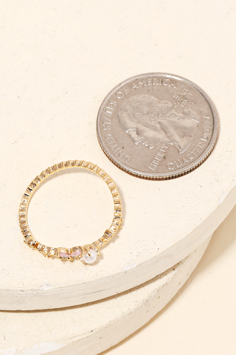 This is a must have ring have a delicate pearl rhinestone fashion ring design. This is the perfect gift for a special someone. Available in G and S.