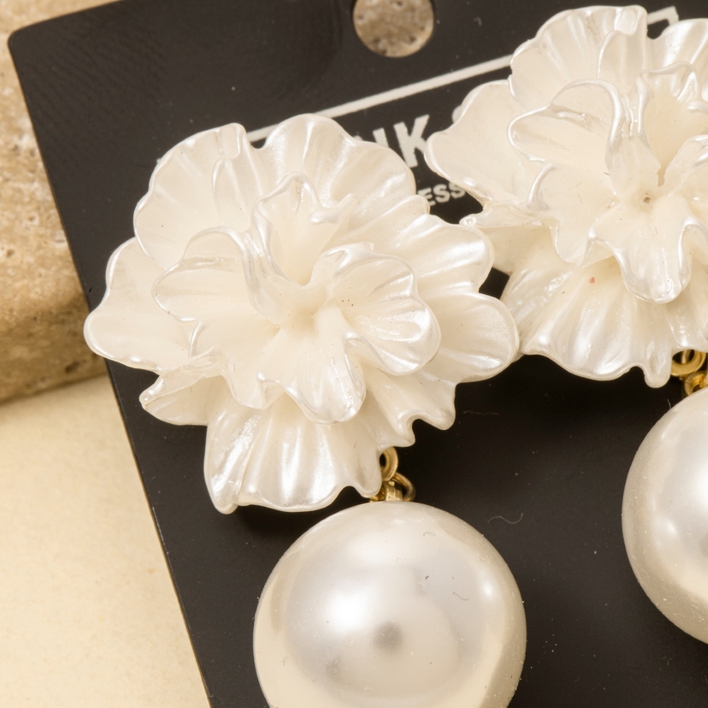 • This piece is both timeless and contemporary, this pair of dangle earrings flaunts a luxurious acrylic cluster petals and pearl design. Elevate your fashion IQ with this versatile pair of dangle earrings, designed to seamlessly integrate into any style profile. Available in GWH. This item is sold in packs of 1.