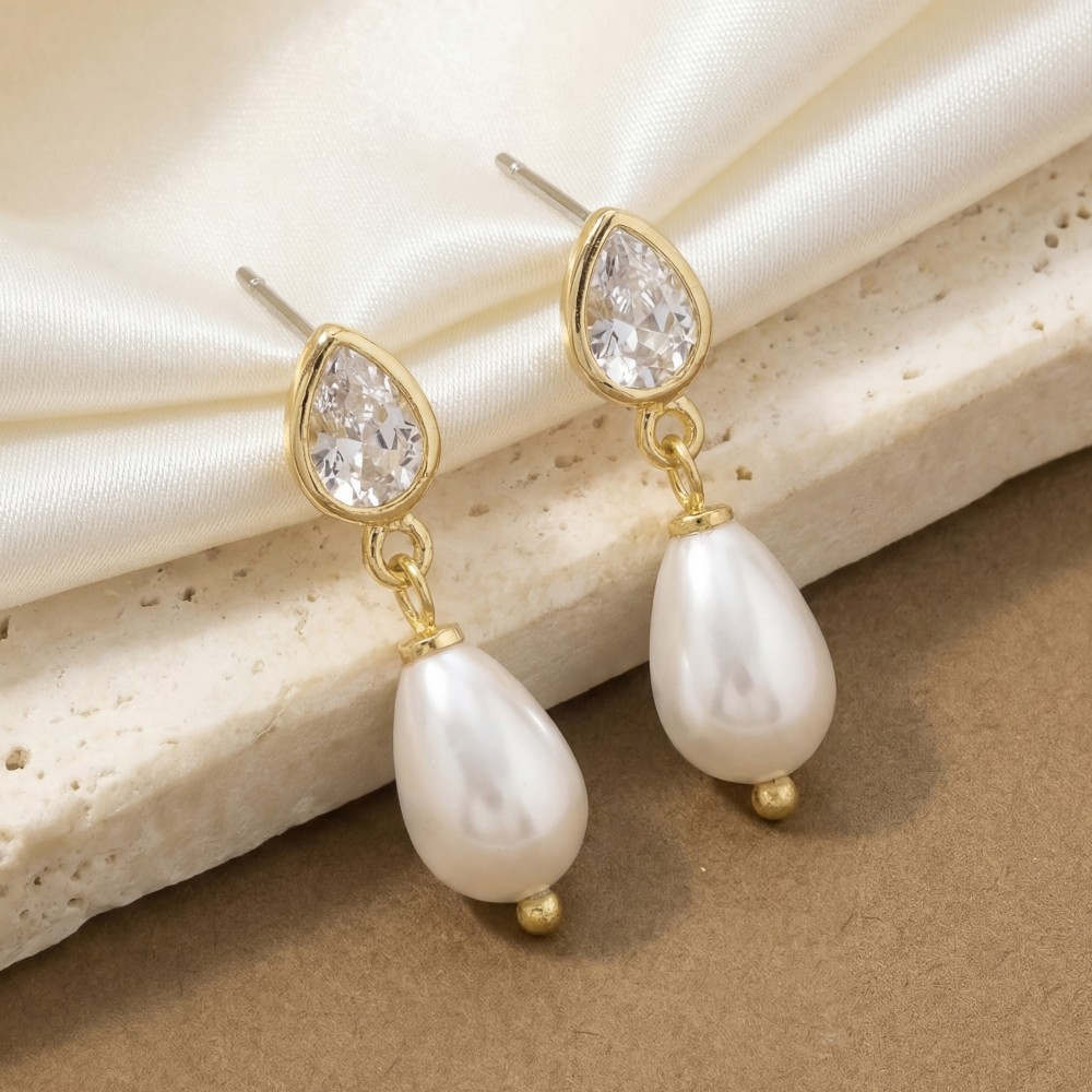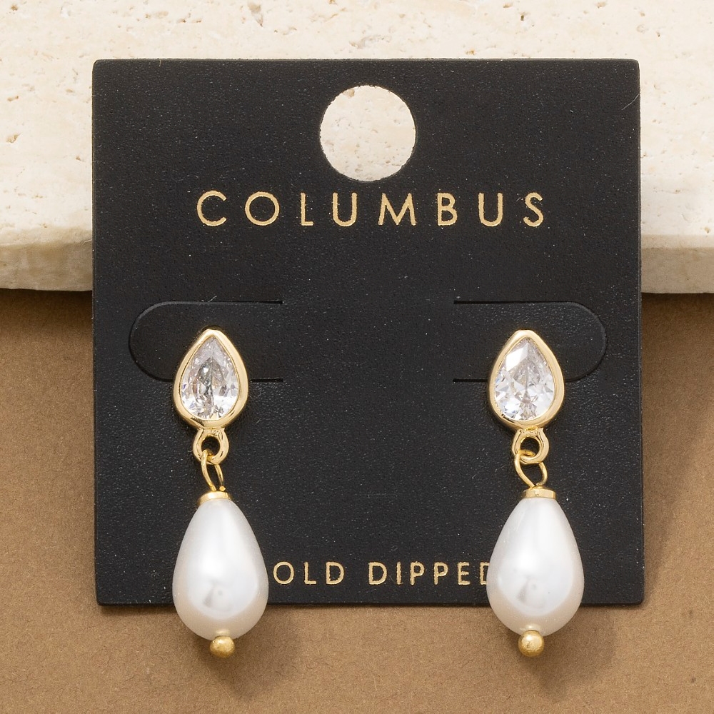 • This season's must-have pair of dangle earrings, this pair of dangle earrings contains a special gold dipped cubic zirconia and pearl tear stud design. A must-have pair of dangle earrings that effortlessly enhances your style, no matter the occasion. Available in GOLD. This item is sold in packs of 1.