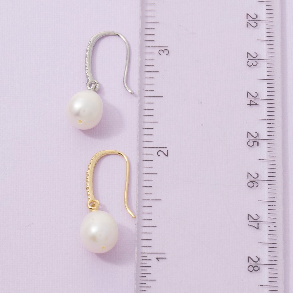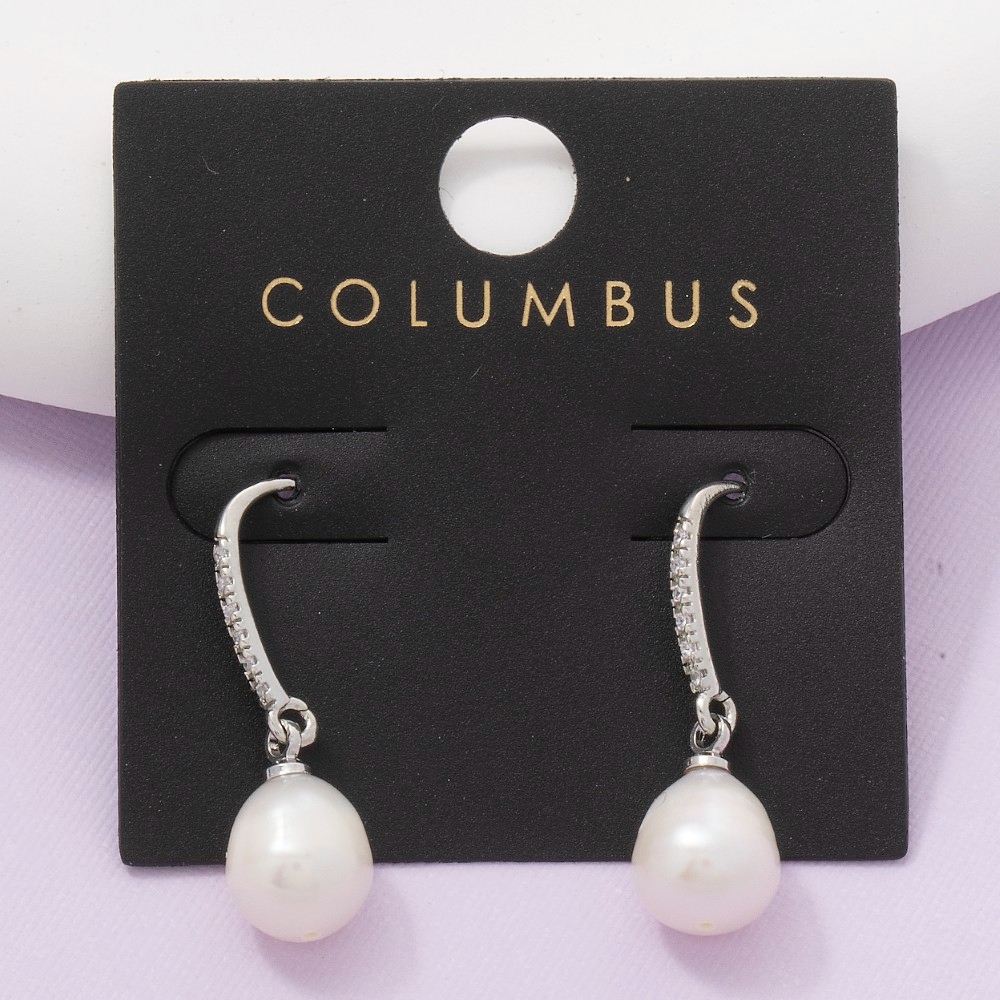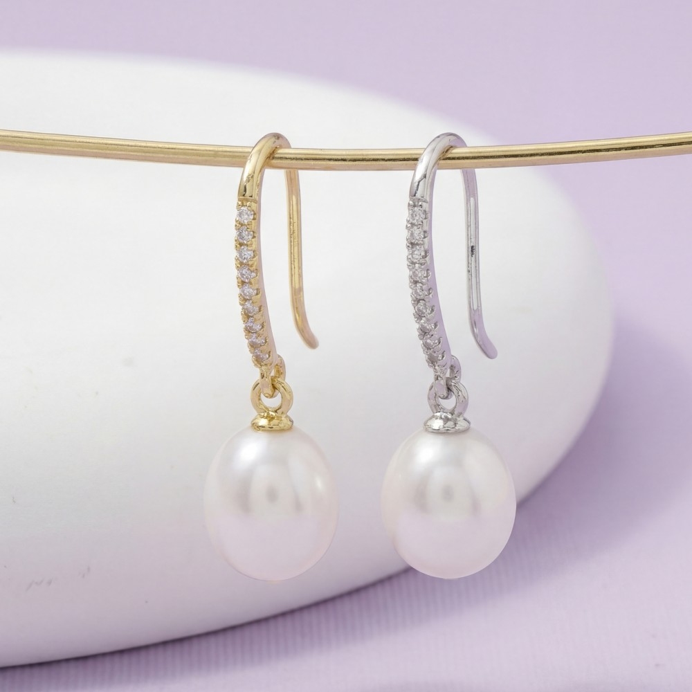 • This pair of dangle earrings is made with 60% Pearl 20% Cz 20% Brass.