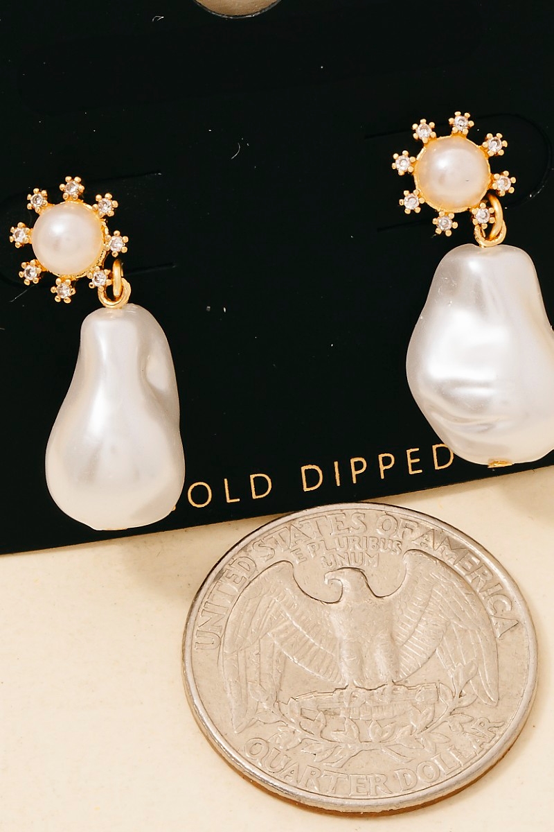 Gold Dipped Cz And Pearl Tear Stud Dangle Earrings