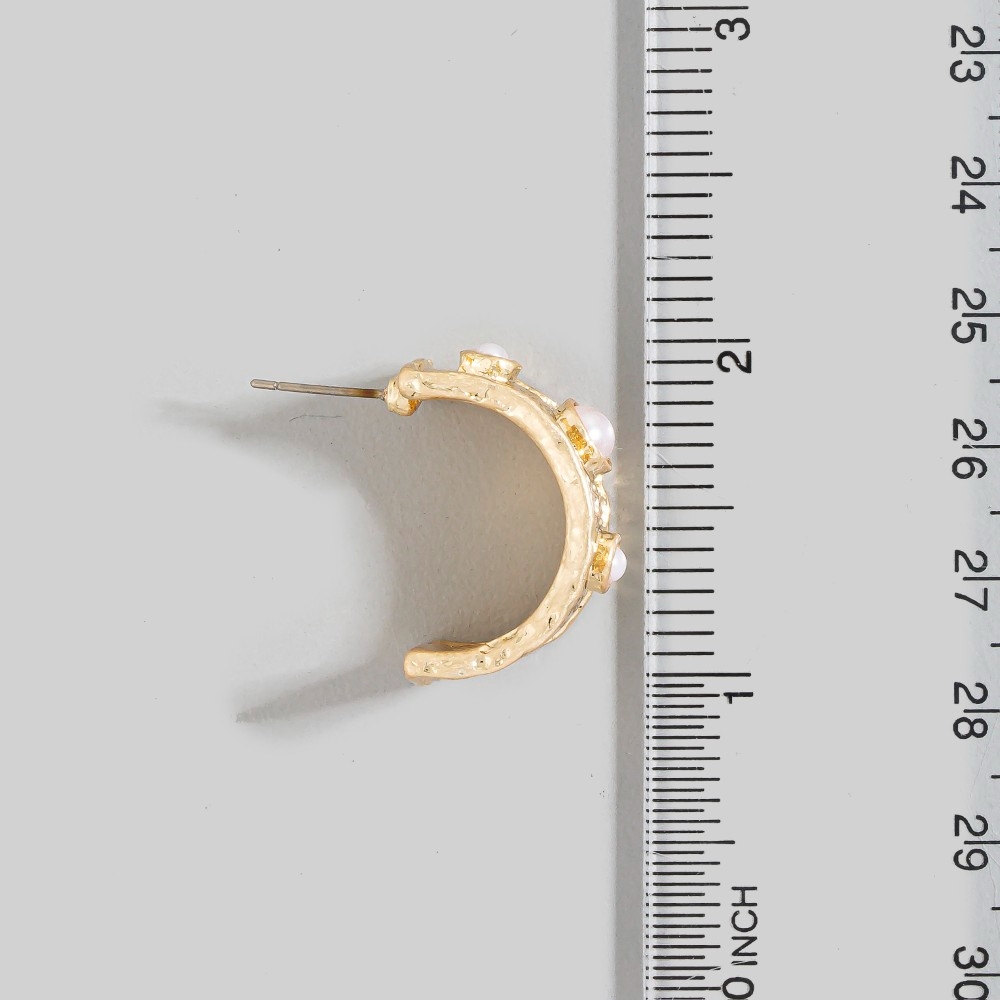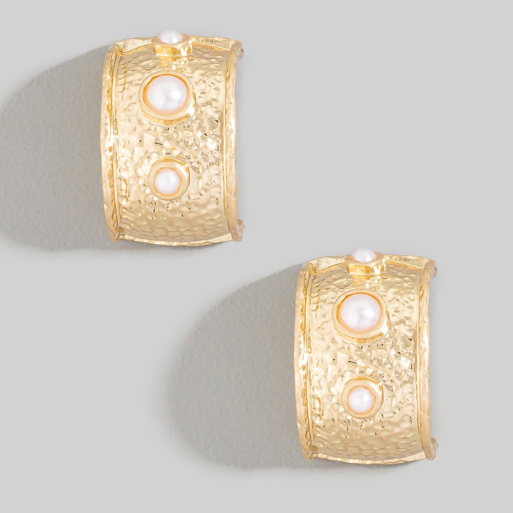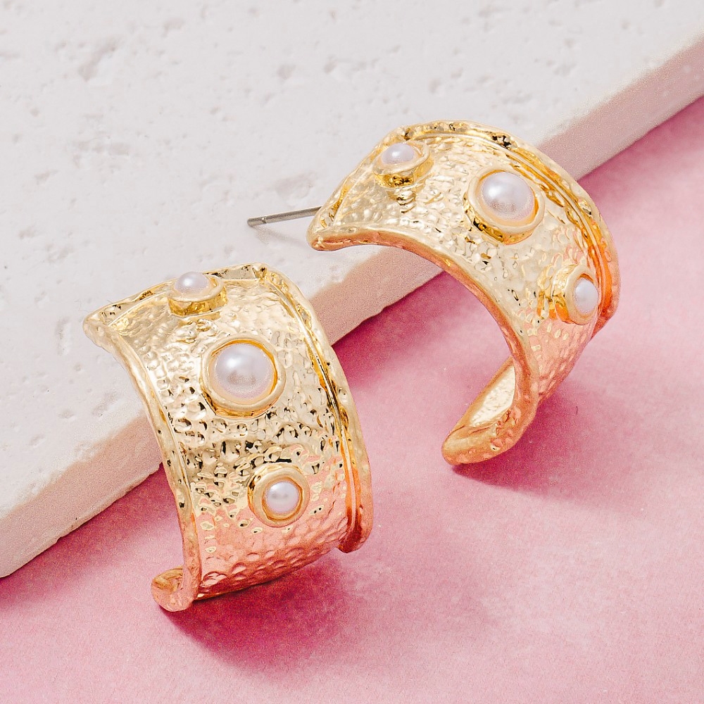 • A stunning piece that is sure to turn heads, this pair of hoop earrings comes with a special hammered triple pearl c design. This pair of hoop earrings is ideal for both casual and formal events, adding a touch of sophistication to any outfit. Available in PL. This item is sold in packs of 1.