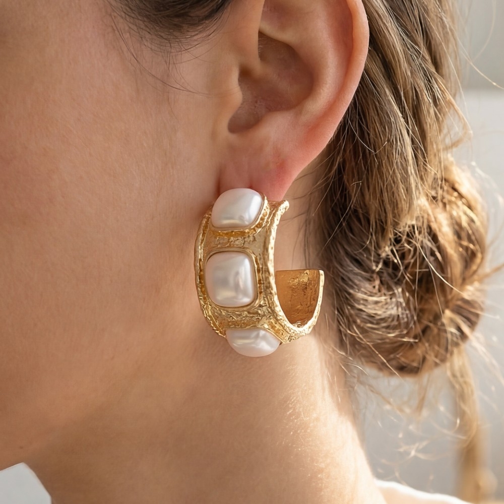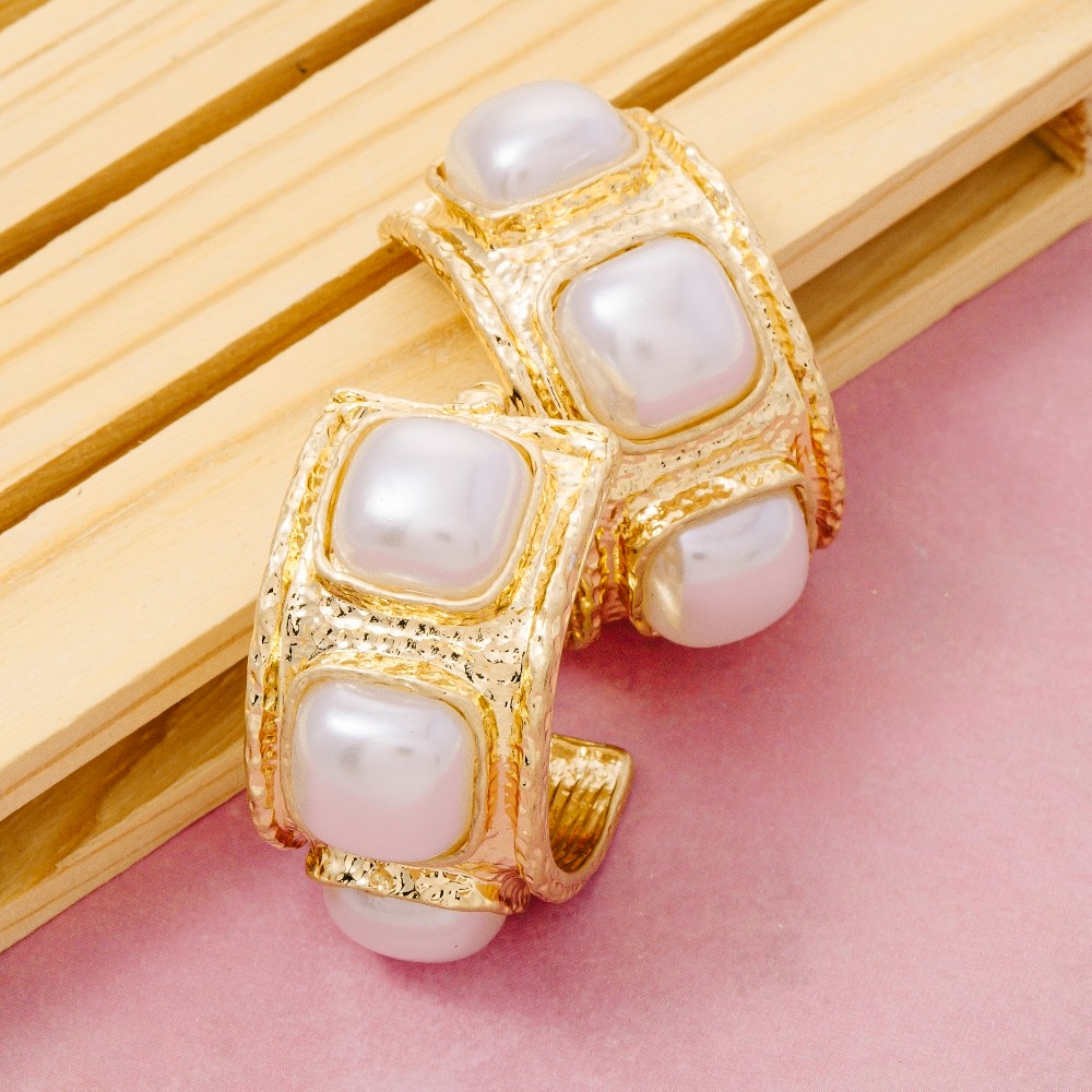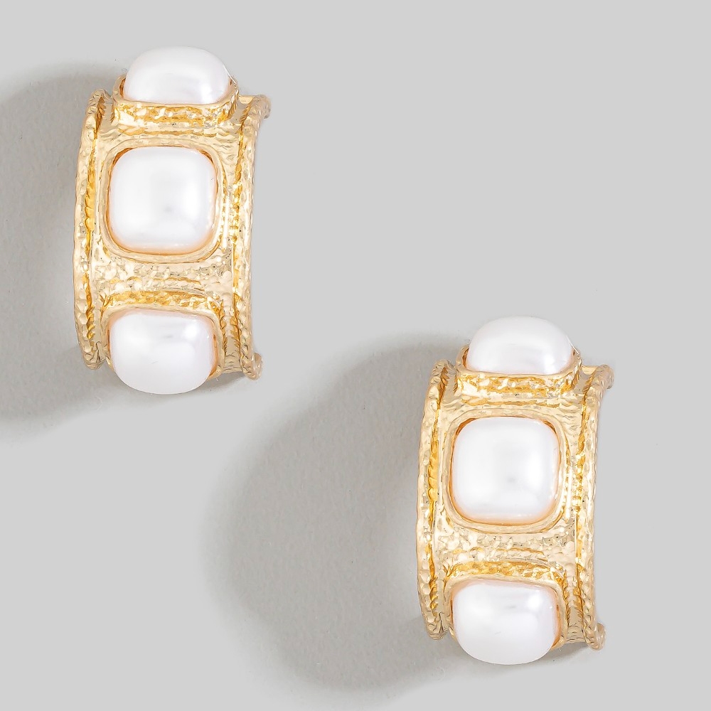 • This season's hottest pair of earrings, this pair of earrings flaunts a luxurious hammered triple square pearl design. A must-have pair of earrings that effortlessly enhances your style, no matter the occasion. Available in PL. This item is sold in packs of 1.