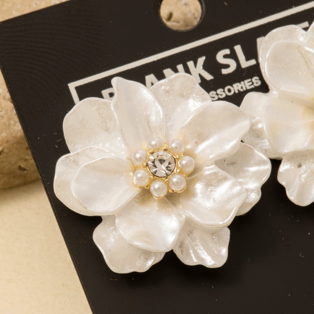 • Elevate any look, this pair of stud earrings features an exceptional intricate acrylic flower design. Elevate your everyday style with this versatile pair of stud earrings, a simple yet impactful addition to your fashion repertoire. Available in GWH. This item is sold in packs of 1.