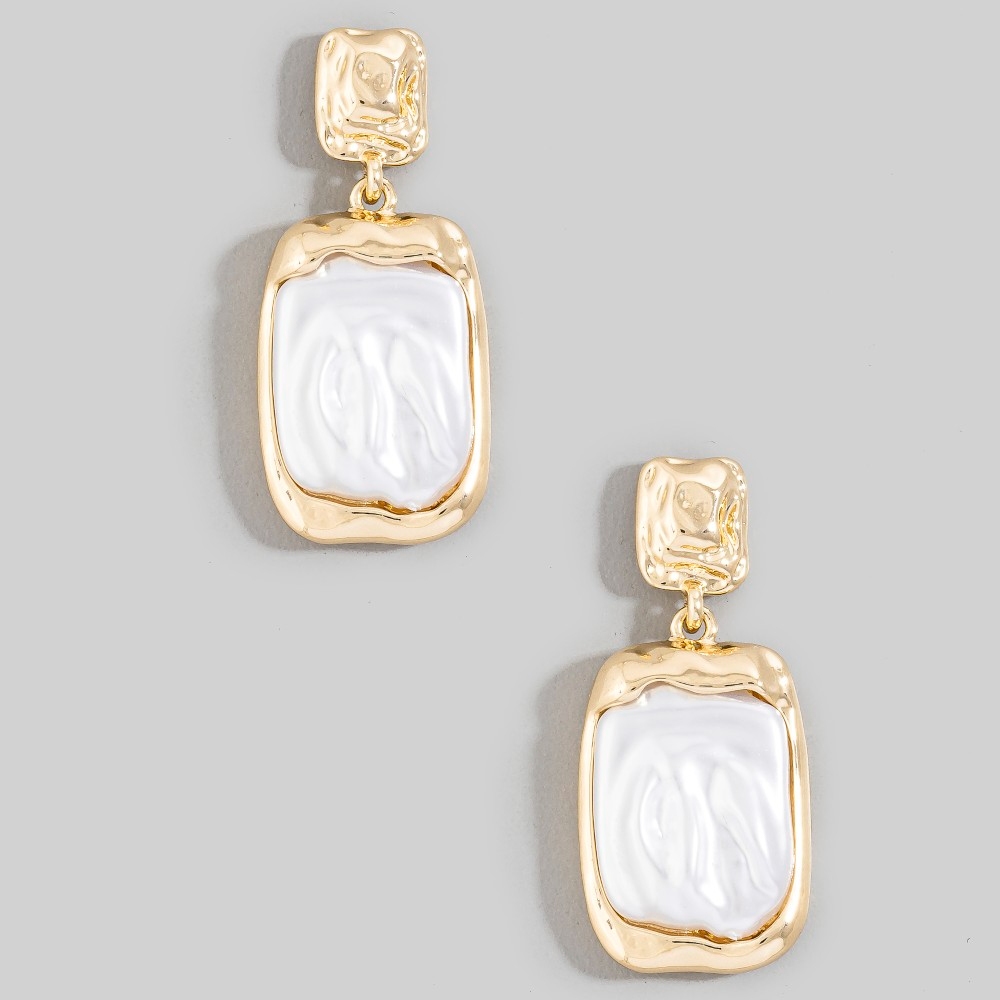 • Effortlessly elevate your style, this pair of dangle earrings presents a striking metallic and pearl rectangle stud design. The perfect way to complete any outfit, whether you're dressing up or keeping it casual. Available in WHITE. This item is sold in packs of 1.