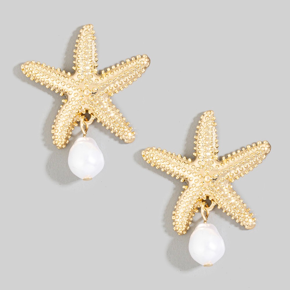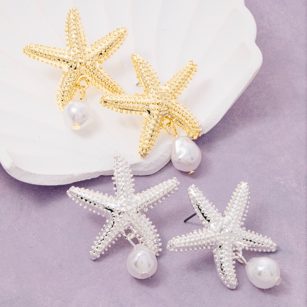• Perfect for any occasion, this pair of drop earrings showcases a breathtaking metallic starfish with pearl design. Perfect for adding some personality and flair to your wardrobe, this pair of drop earrings is a must-have. Available in GDPL, SVPL. This item is sold in packs of 1.