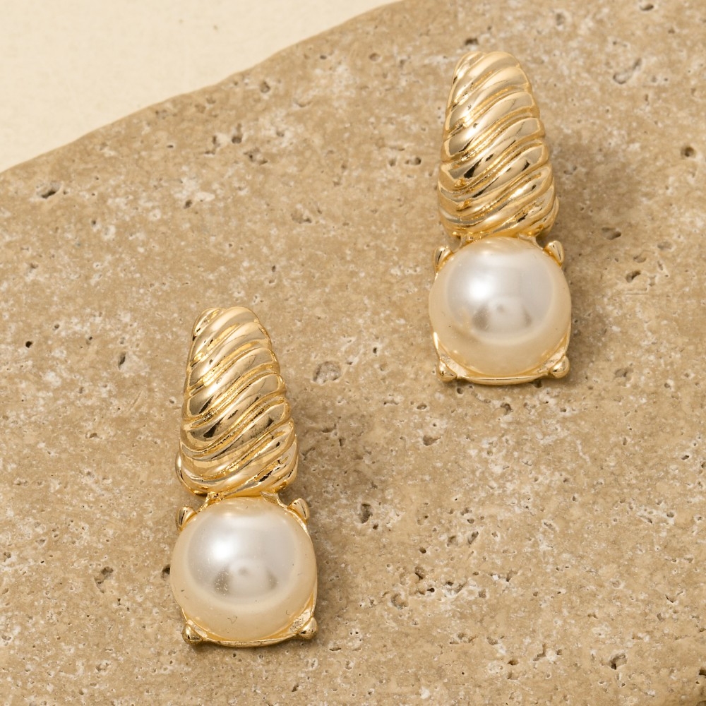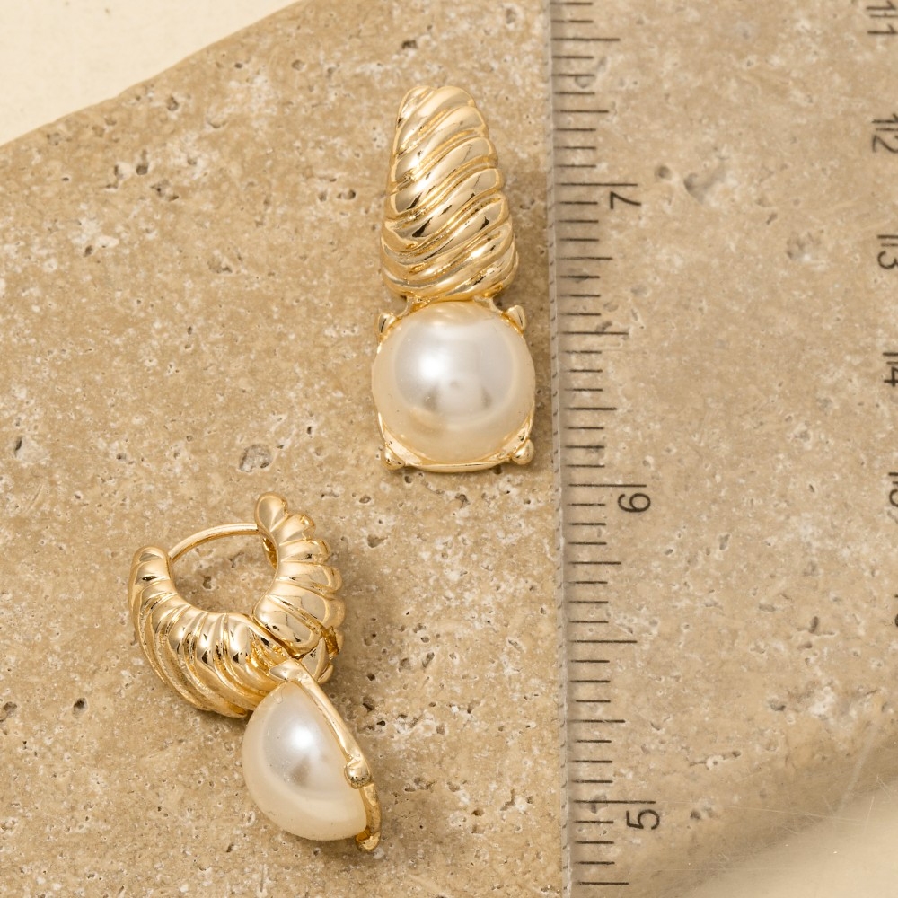 Spiral Shell And Pearl Charm Stud Dangle Earrings