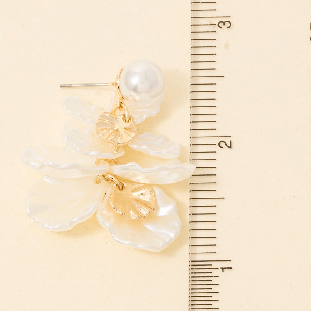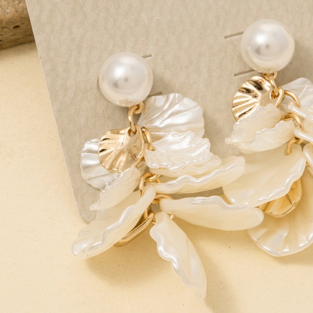 • The perfect way to showcase your unique style, this pair of dangle earrings evokes a captivating pearl and petals cluster design. Add a touch of glamour to your wardrobe with this versatile pair of dangle earrings, perfect for enhancing the elegance of any look. Available in G. This item is sold in packs of 1.