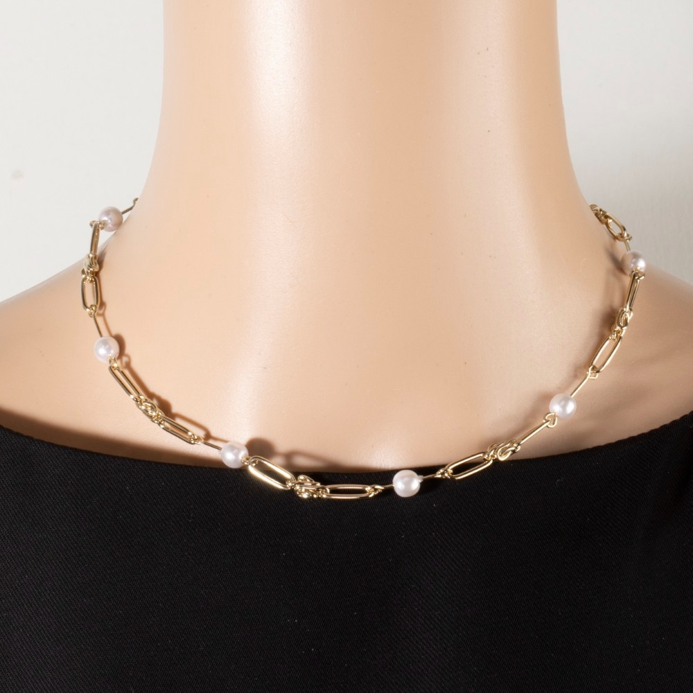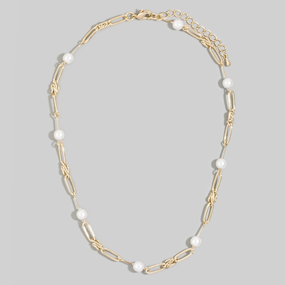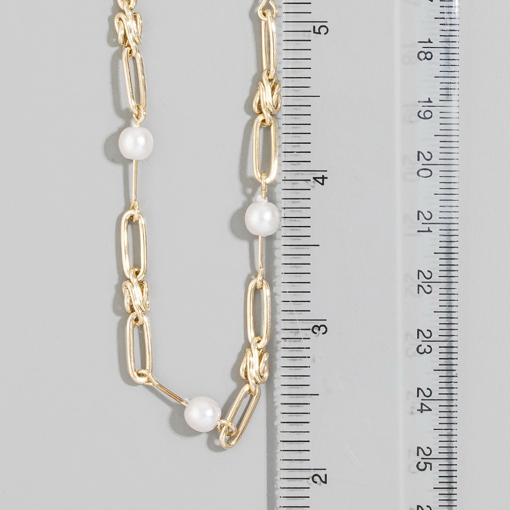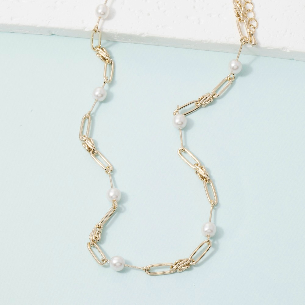 An instant wardrobe staple, this necklace adds a distinctive gold paperclip link chain pearl station design. Elevate your everyday style with this versatile necklace, a simple yet impactful addition to your fashion repertoire. Available in G. This item is sold in packs of 1.