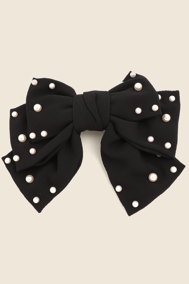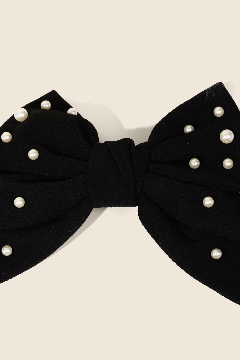 Black Pearl Bead Ribbon Bow Hair Clip