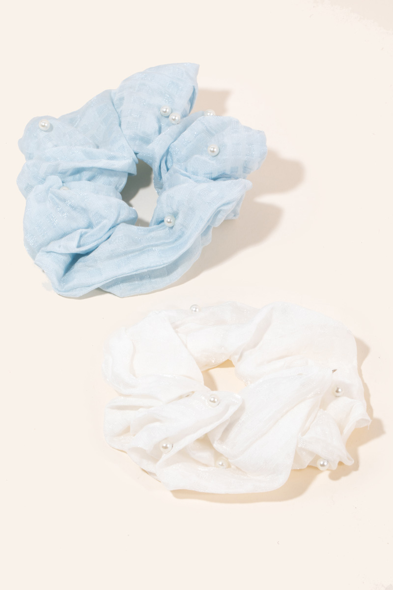 - A classic design with a contemporary twist, this headband reveals an intricate two piece pearl scrunchie set design. Make a lasting impression with this versatile headband, a subtle yet impactful addition to your fashion repertoire. This item is sold in packs of 1.