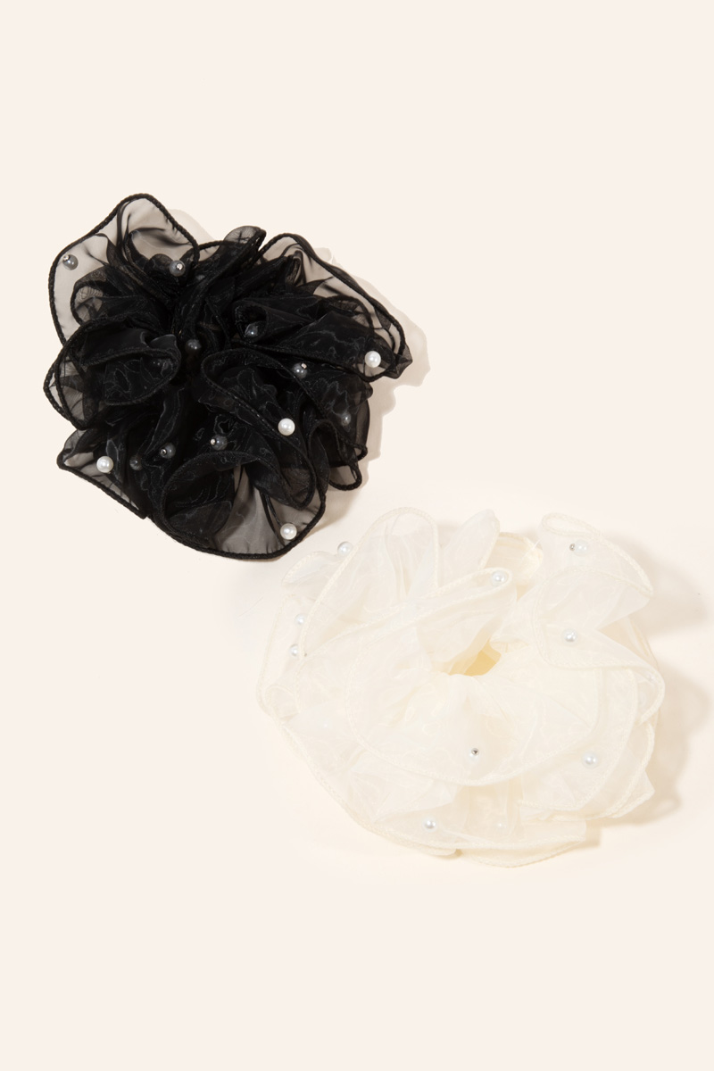 • Add some edge to your wardrobe, this headband includes a stunning two piece sheer pearl studded scrunchie set design. Experience the transformative power of this versatile headband, effortlessly enhancing the overall aesthetic of your outfit. This item is sold in packs of 1.