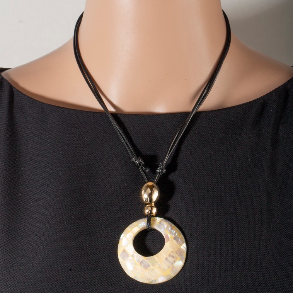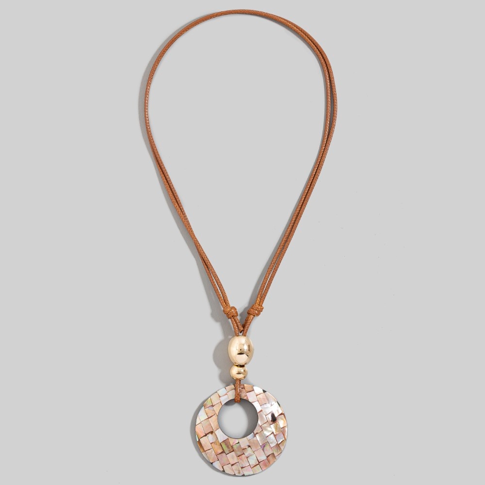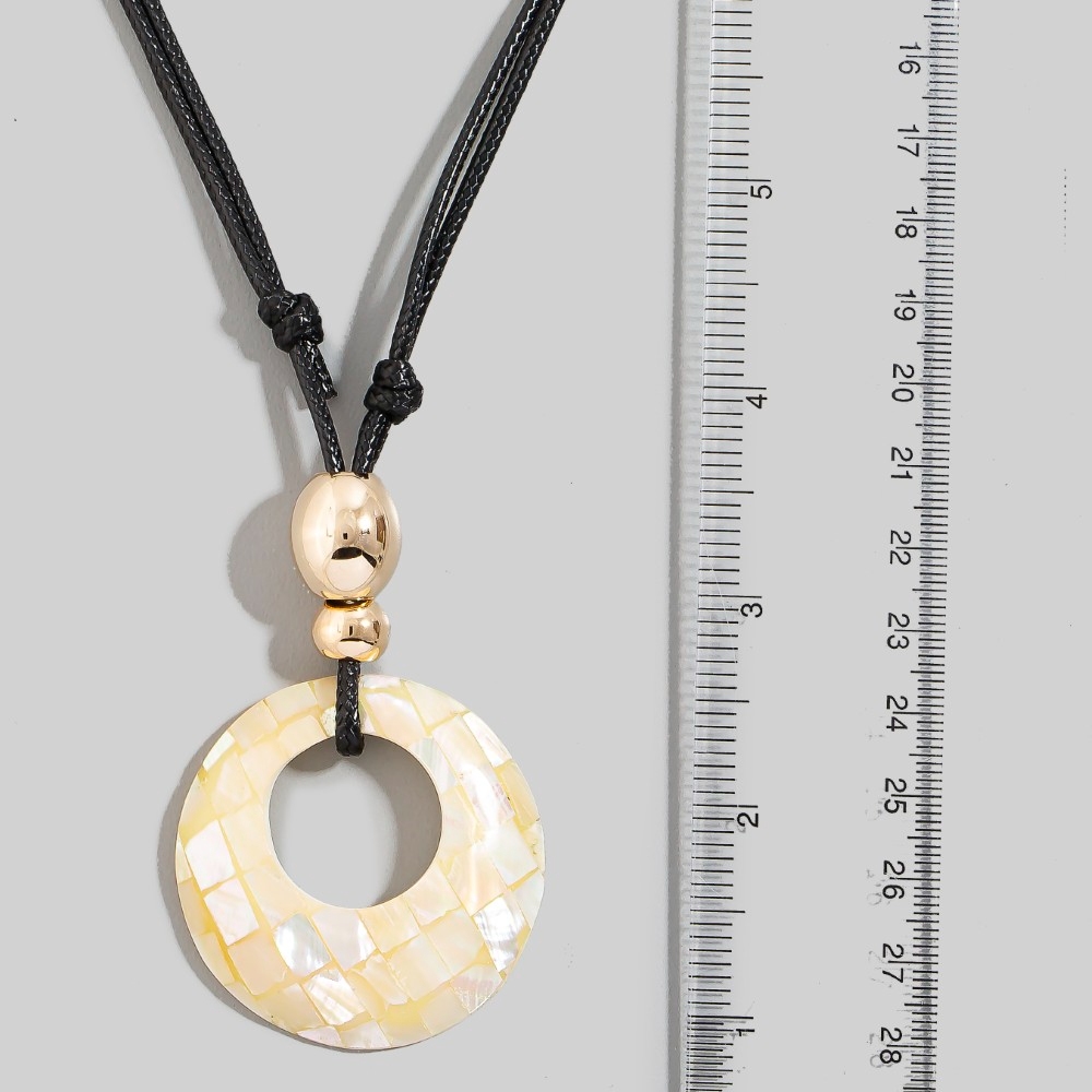 This season's must-have pendant necklace, this pendant necklace embodies a sophisticated mother of pearl mosaic large hoop pendant layered cord necklace design. Infuse a hint of luxury into your daily attire with this versatile pendant necklace, a must-have for those who appreciate timeless elegance. Available in PK, WH. This item is sold in packs of 1.