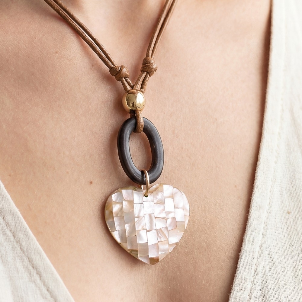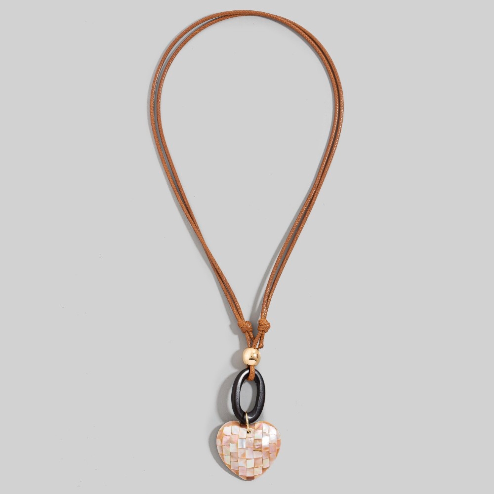 • Uniquely designed and endlessly stylish, this pendant necklace contains a special mother of pearl mosaic heart pendant layered cord necklace design. Elevate your fashion IQ with this versatile pendant necklace, designed to seamlessly integrate into any style profile. Available in PK, WH. This item is sold in packs of 1.