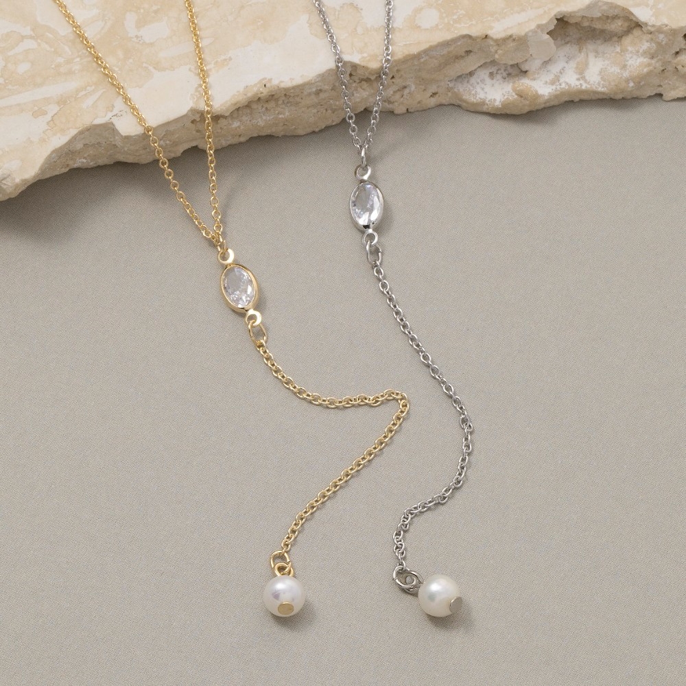 • This chain necklace is made with 80% Brass, 10% Cubic Zirconia and 10% Fresh Water Pearl.