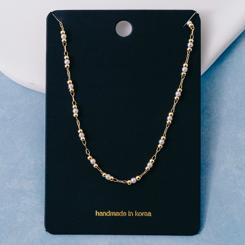 • This chain necklace is made with 60% Brass and 40% Acyrlic Pearl.
