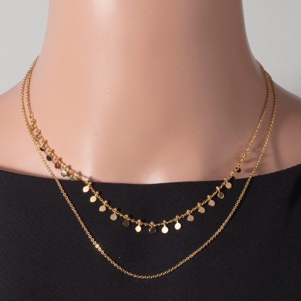 • Make a statement, this chain necklace evokes a captivating dainty layered chain mini disc charms necklace design. Elevate your fashion IQ with this versatile chain necklace, designed to seamlessly integrate into any style profile. Available in G. This item is sold in packs of 1.