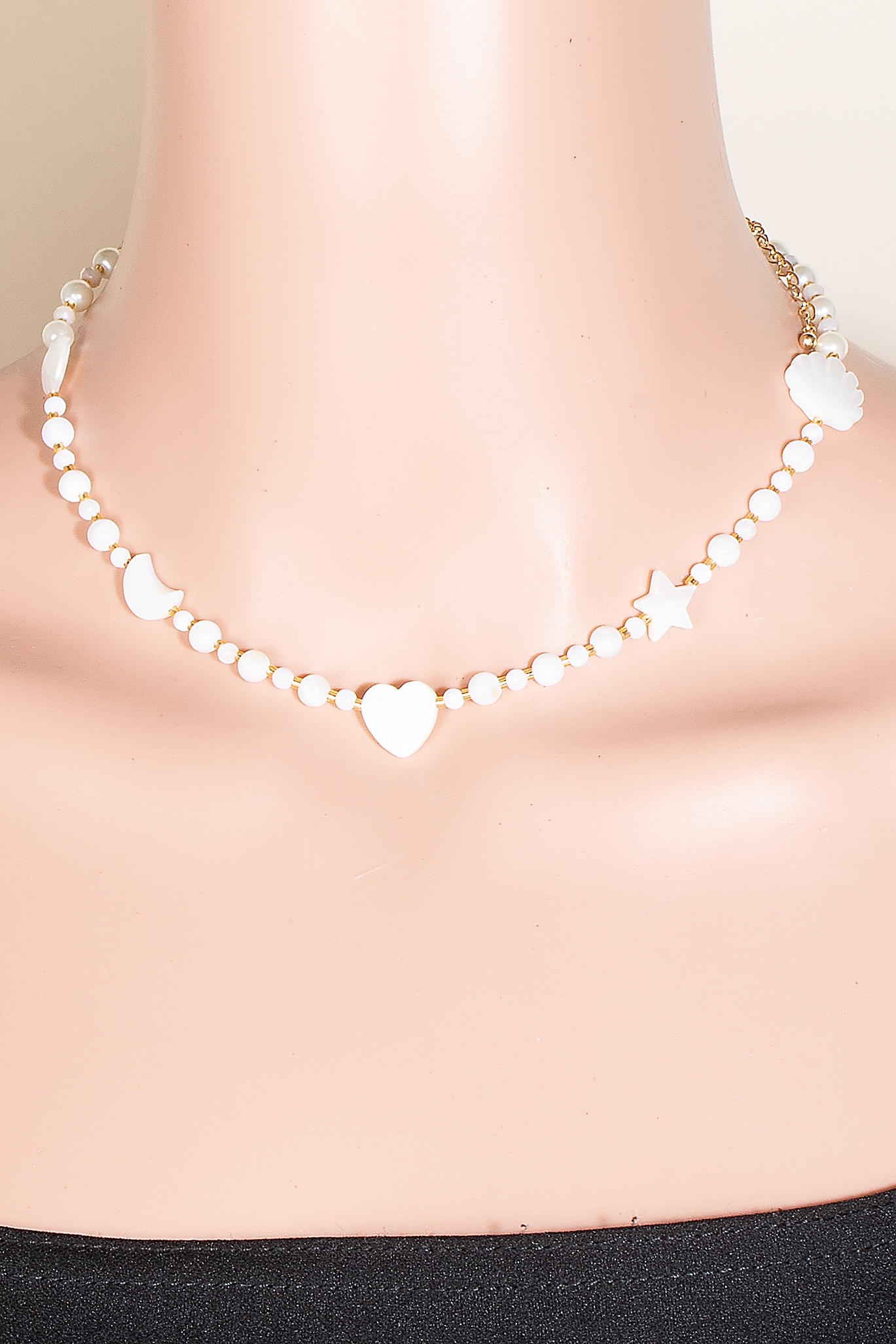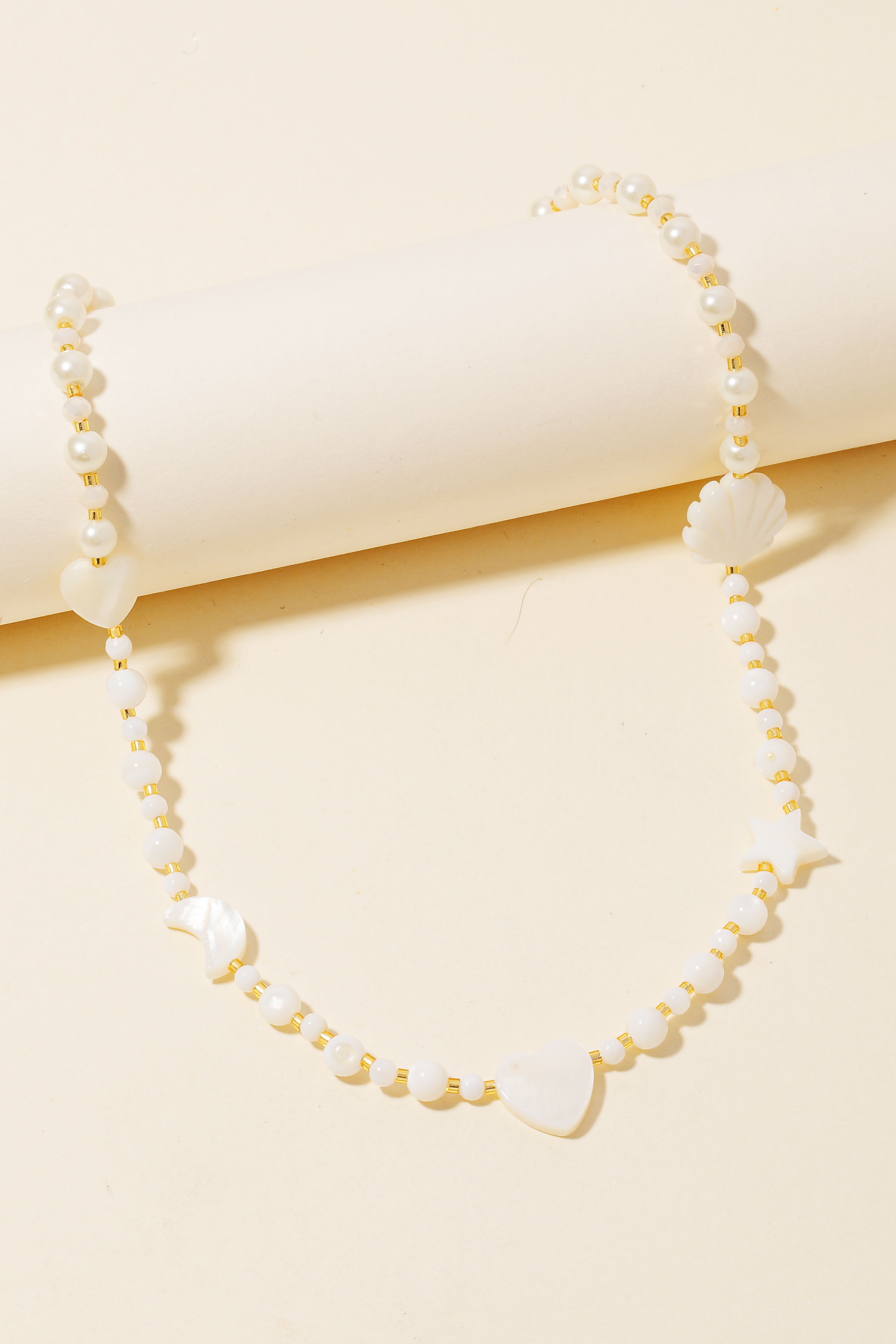 • Make a statement, this necklace features an exceptional mixed shape shell charms pearl beaded design. It also features a shell,heart,moon and star. This item is the perfect way to add some texture and interest to any outfit. Available in GDCRM. This item is sold in packs of 1.