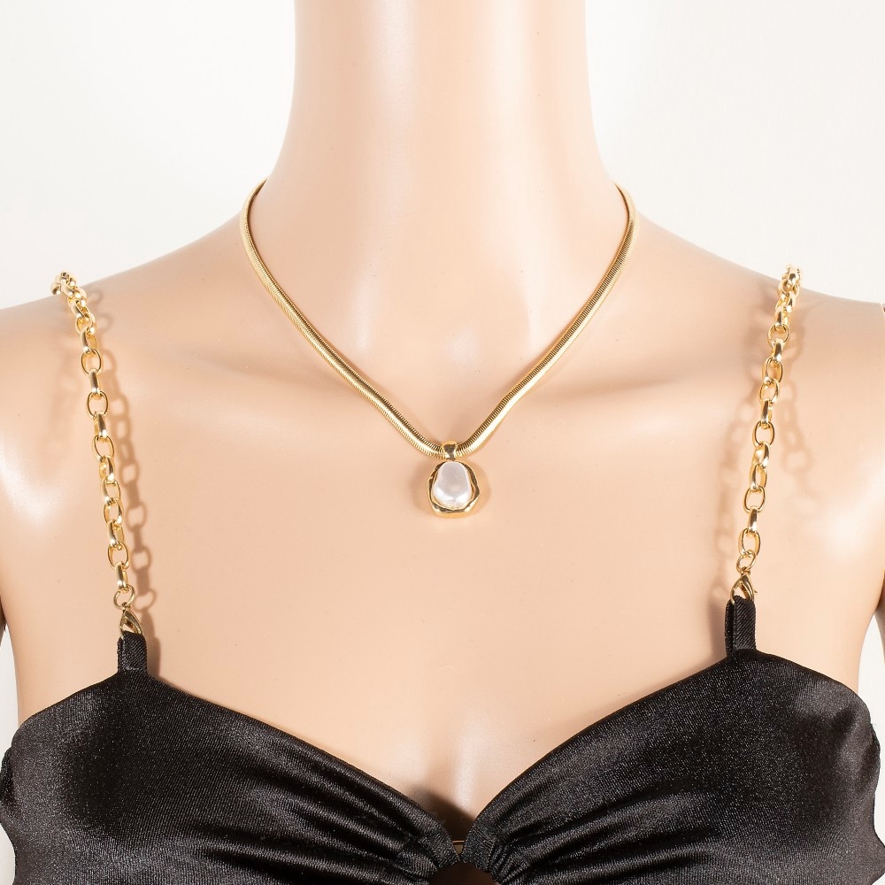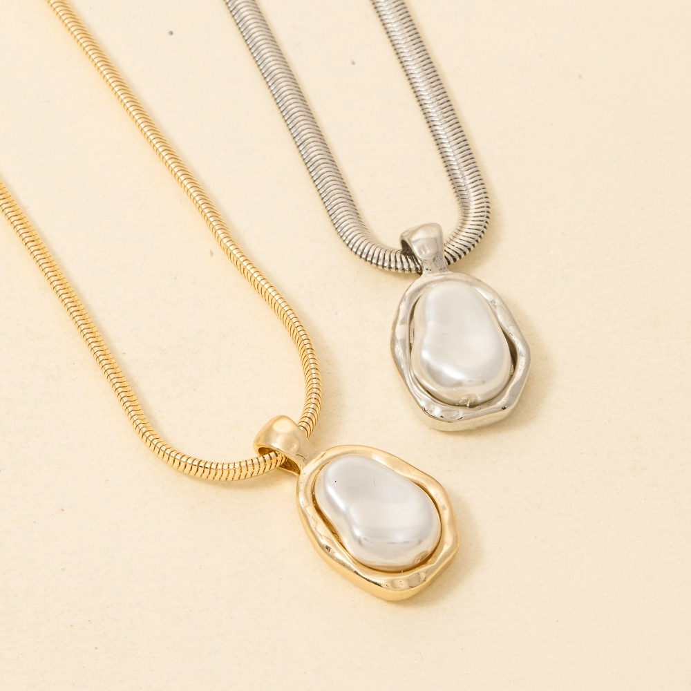 Effortlessly stylish and always on-trend, this chain necklace incorporates a remarkable pearl pendant herringbone design. This item is ideal for those who want to add some personality to their wardrobe without being too bold. Available in GDCRM, RHCRM. This item is sold in packs of 12.