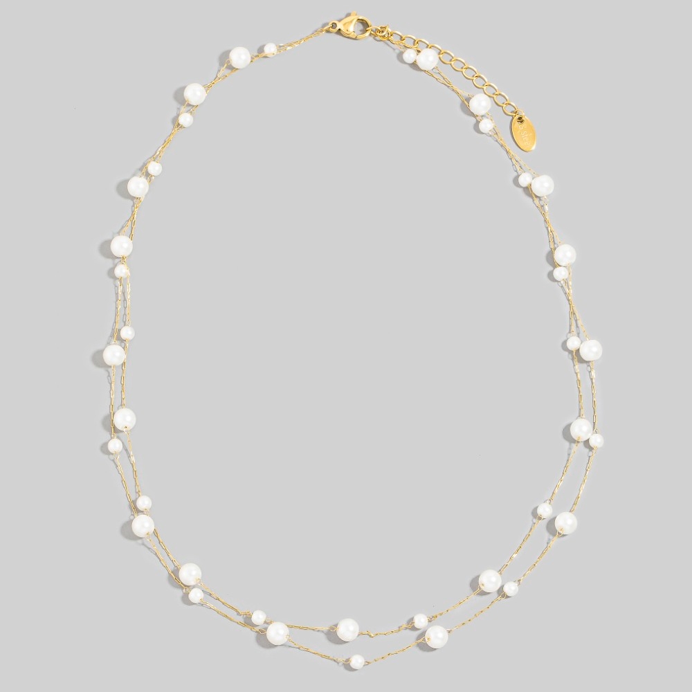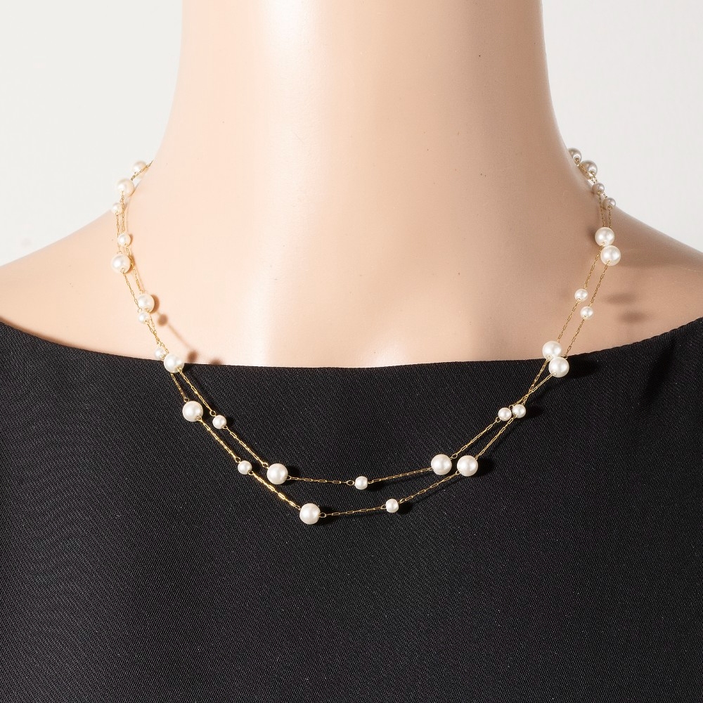 • Perfect for any fashion-forward individual, this chain necklace radiates a sleek stainless steel pearl station beads layered design. A perfect addition to your wardrobe that effortlessly enhances your style. Available in GD. This item is sold in packs of 1.