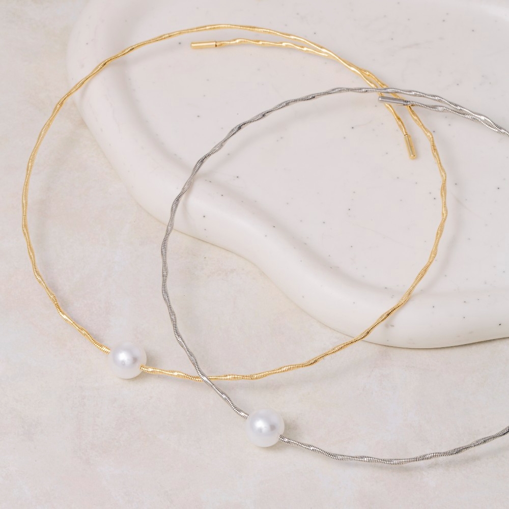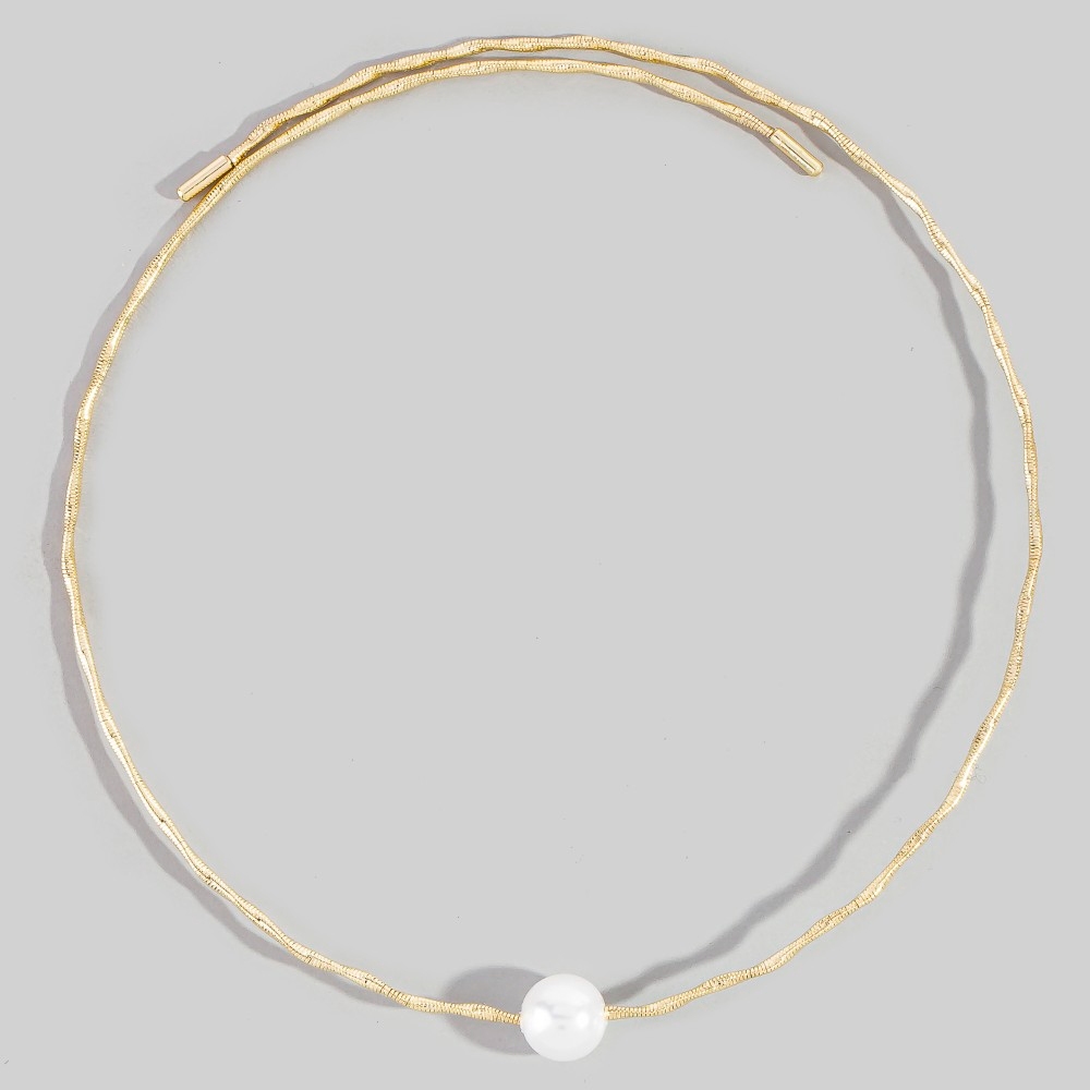 • Effortlessly elevate your style, this necklace possesses a fine pearl bead twisted wire choker design. Unlock endless styling possibilities with this versatile necklace, creating a signature look that speaks volumes. Available in G, S. This item is sold in packs of 1.