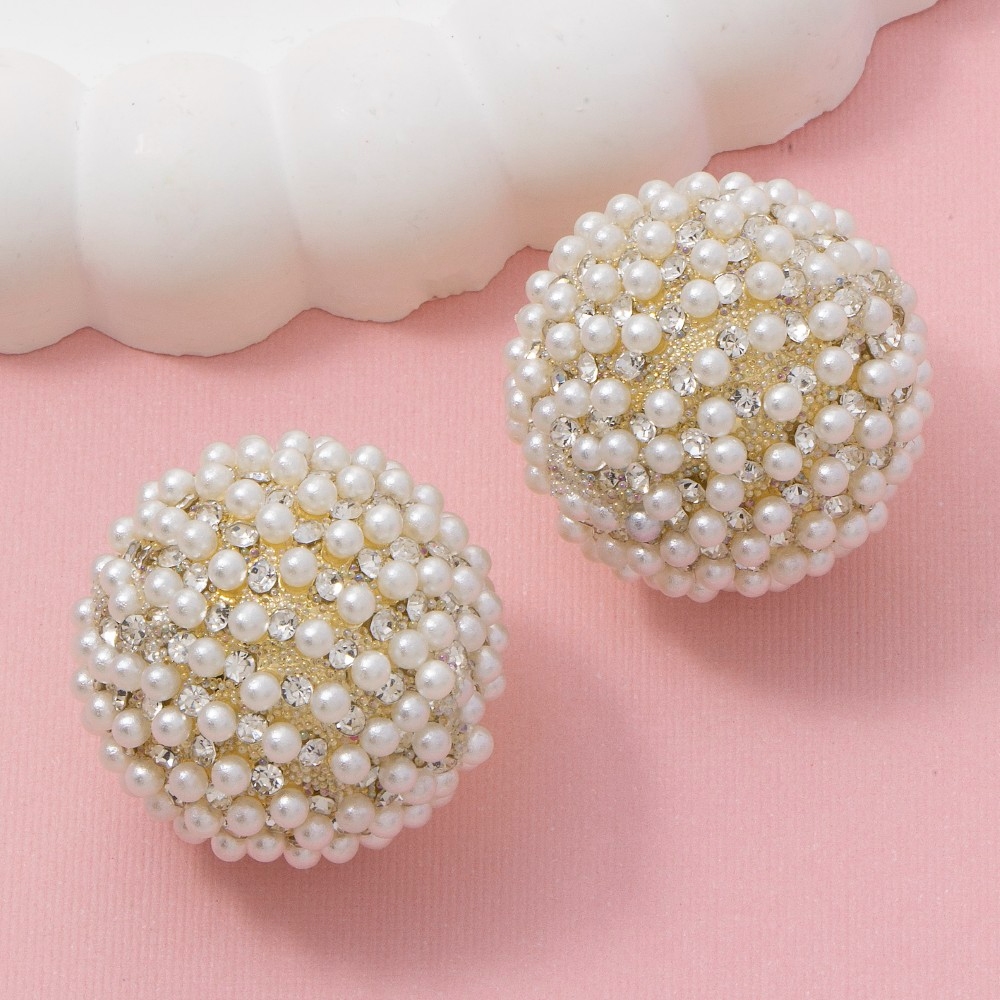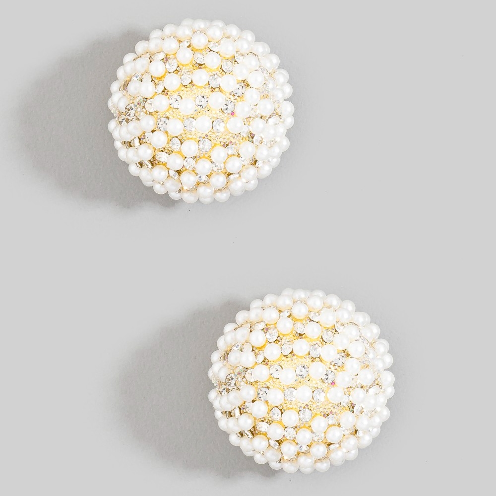 Bold, daring, and endlessly stylish, this pair of stud earrings presents a striking pearl and cubic zirconia pave dome design. This pair of stud earrings is the perfect way to add a touch of elegance to any outfit. Available in G. This item is sold in packs of 1.