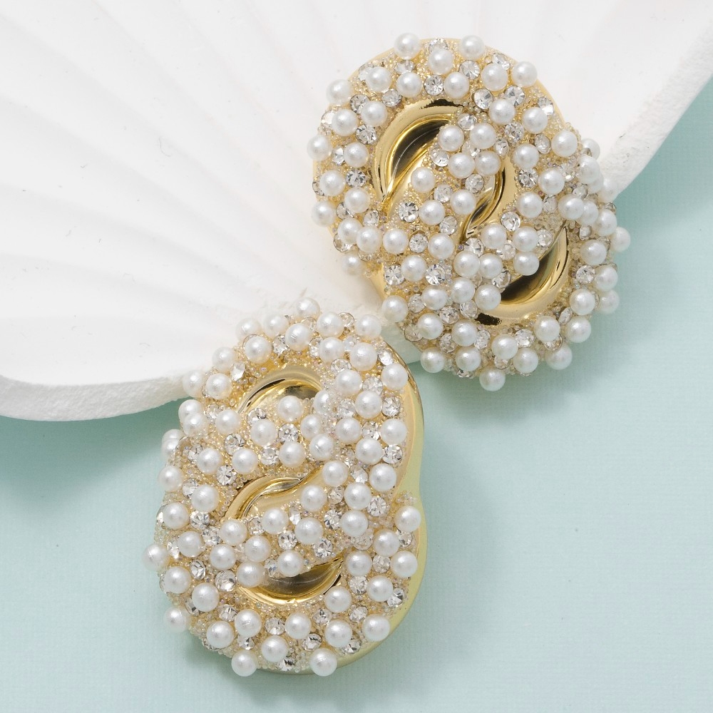 • Chic, sophisticated, and always in style, this pair of stud earrings comes with a special pearl and cubic zirconia pave knot design. This pair of stud earrings is ideal for both casual and formal events, adding a touch of sophistication to any outfit. Available in G. This item is sold in packs of 1.