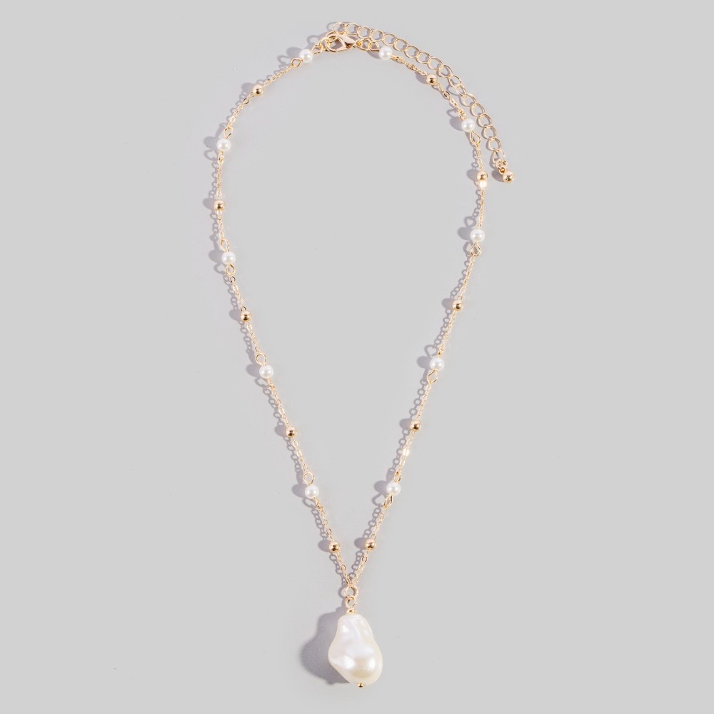 Effortlessly elevate your style, this pendant necklace features an exceptional pearl station chain pearl design. Unlock endless styling possibilities with this versatile pendant necklace, creating a signature look that speaks volumes. Available in GDCM. This item is sold in packs of 1.